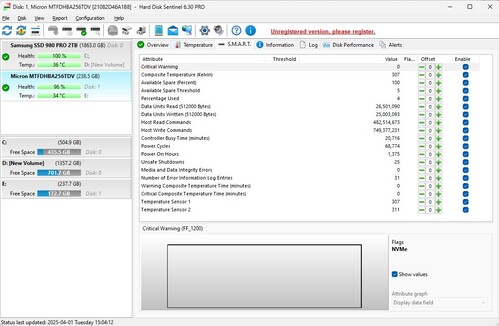 Micron M.2 nvme 256Gb ssd 100/96-os