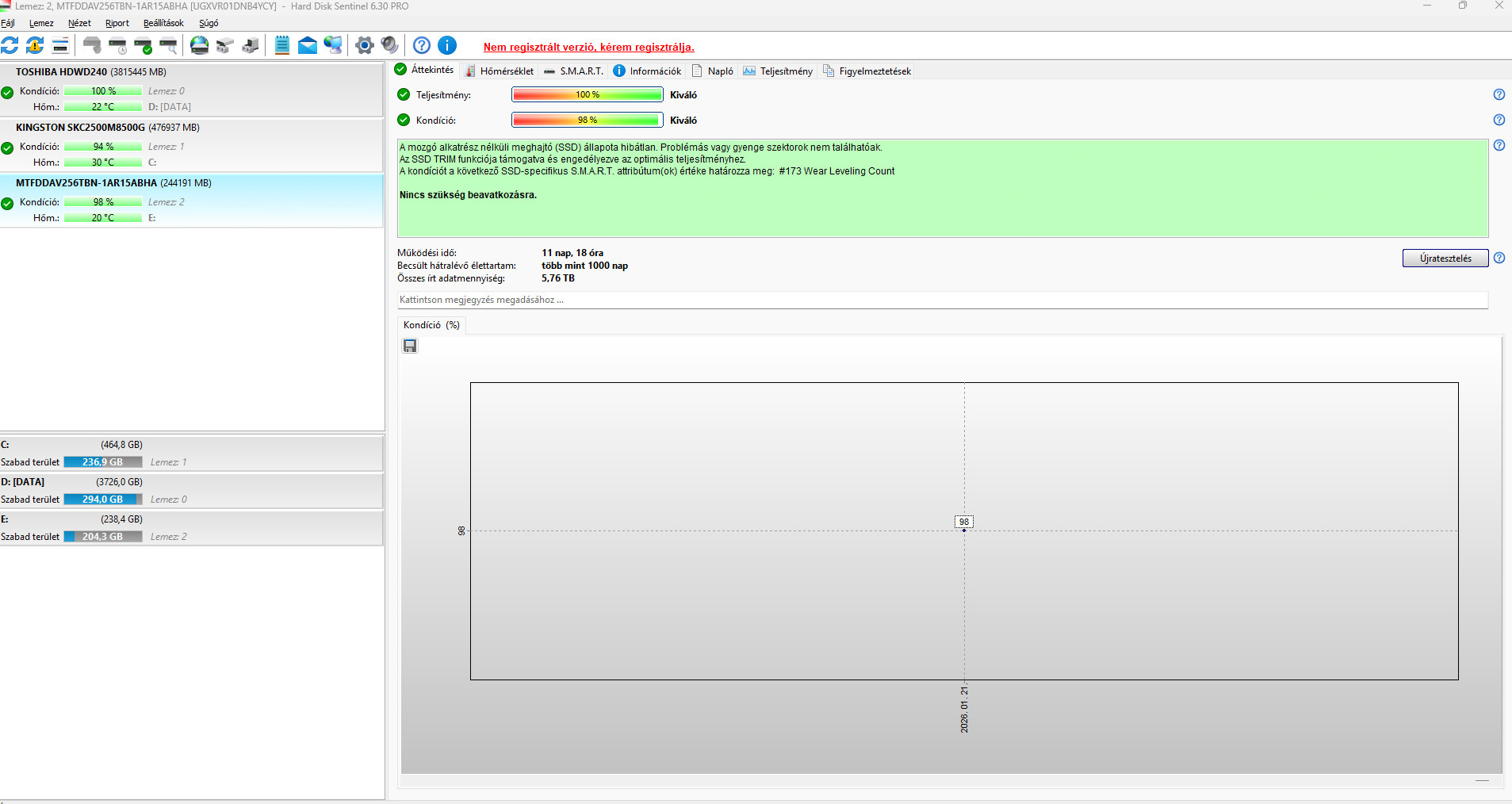 Micron m.2 SSD 256GB Notebook - 100/98%