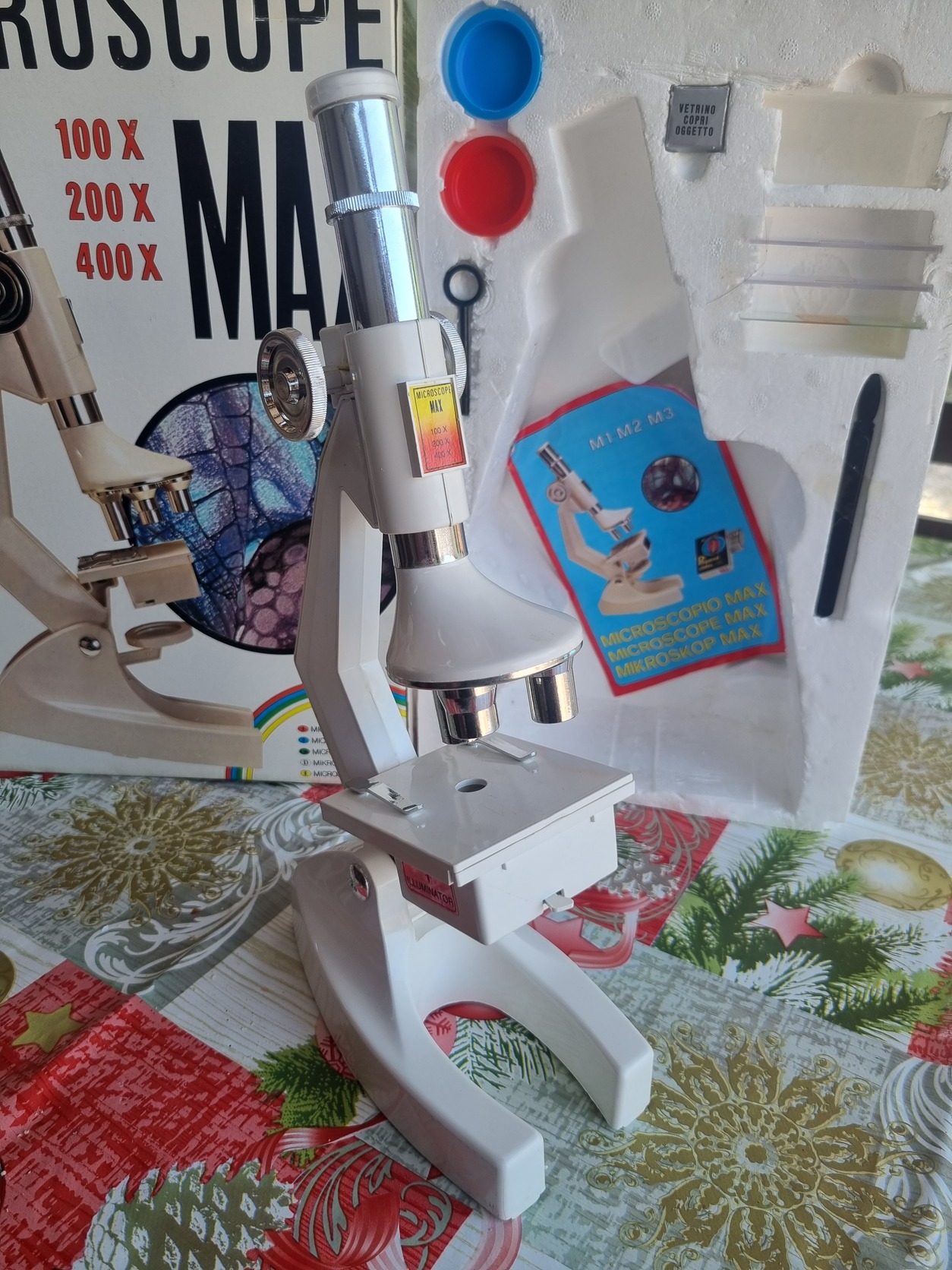 Retro játék gyerek mikroszkóp, 3 nagyító lencsével (100x, 200x, 400x), eredeti dobozában!
