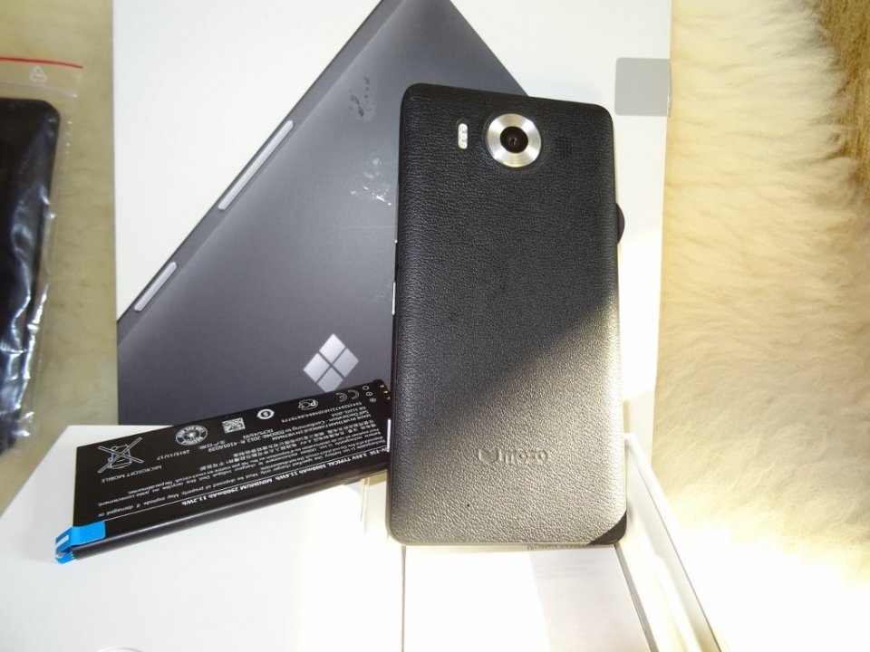 Microsoft Lumia 950 fekete LTE Dual SIM eladó, TURBADO gartanciával 2018 május 1-i két valódi bőr Mozo hátlappal. A jobb élen apró sérülés található.