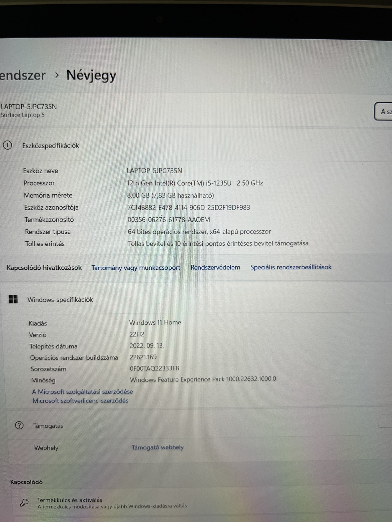 Microsoft Surface 5 Laptop 13.5" 2K Érintős i5 1235U 8GB DDR5 256GB SSD 100% Aku Akár 18óra üzemidő