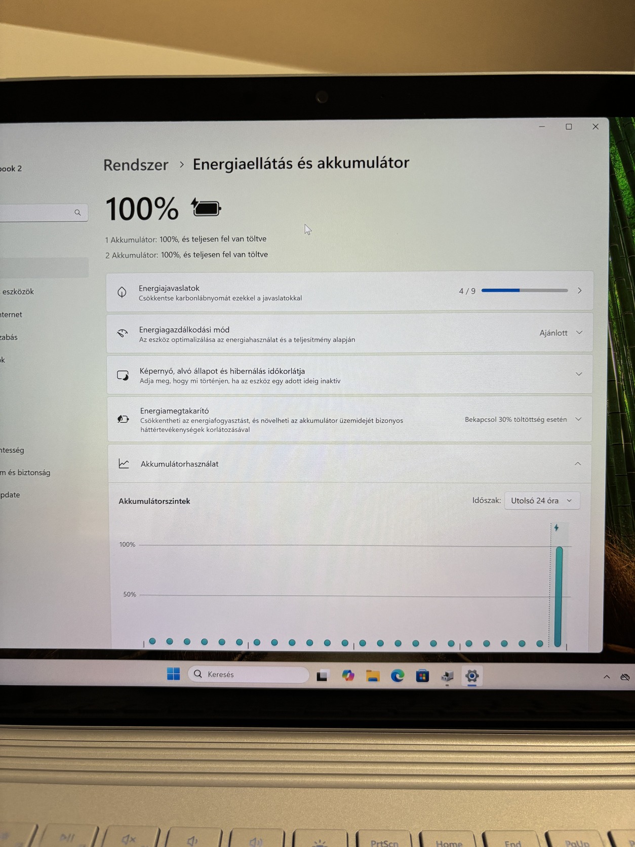 A képen látható, hogy mind2 akkumulátor 100%-ra tölthető jelenleg.