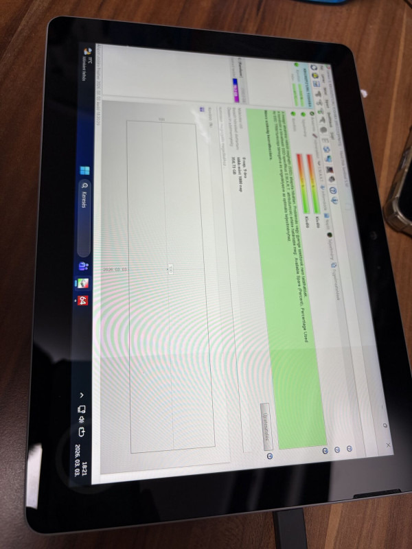 Kijelző jobb oldala kb 4 centi szélességben sötétebb, ezen szakasz alján melegebb is az eszköz