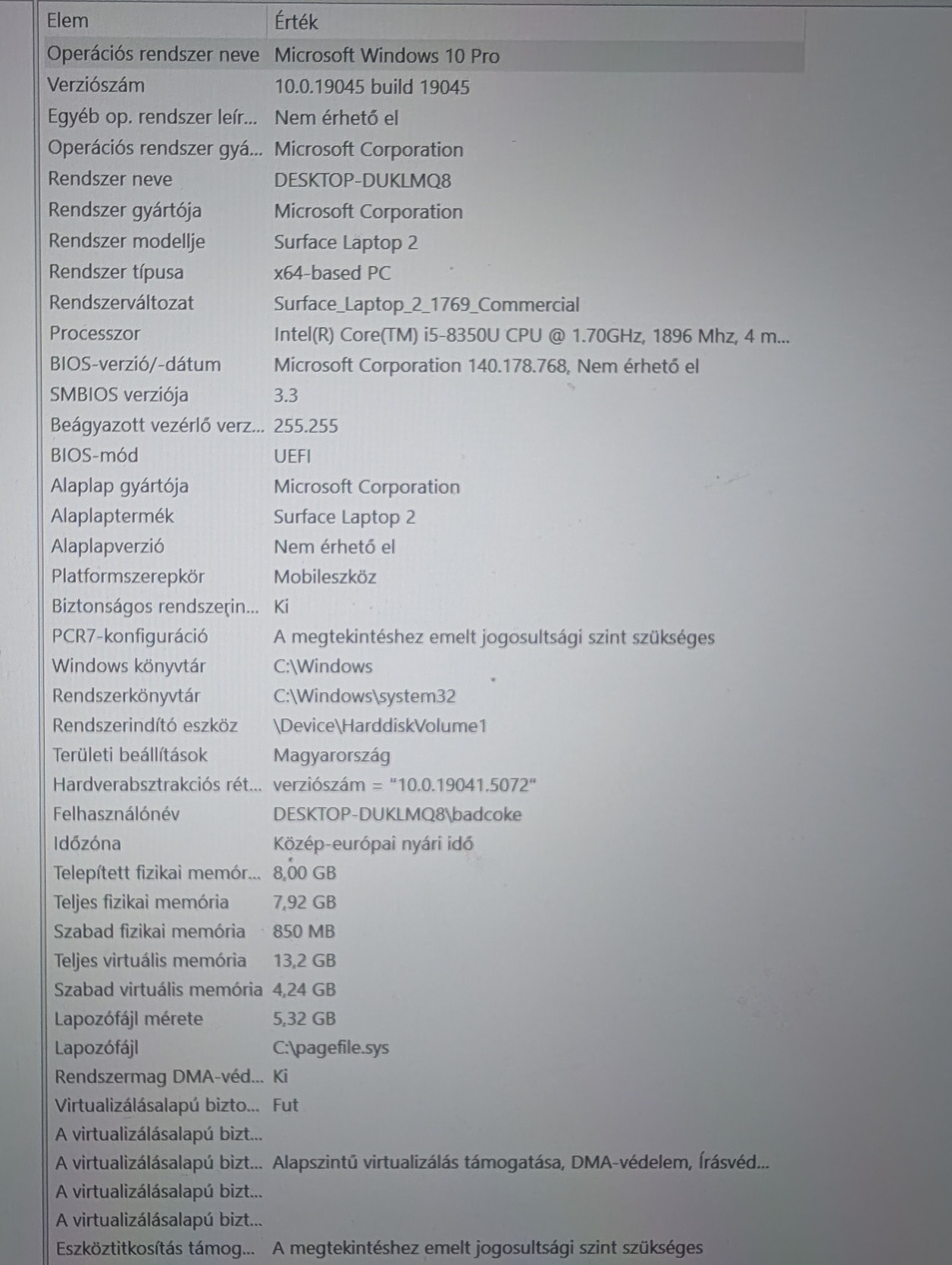 Proc : Intel Core i5-8350u (8.gen) 4 mag/8szál