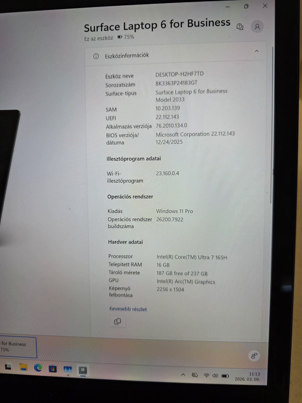 Grafika:Intel Arc integrált GPU kb. 8.9 GB megosztott grafikus memória