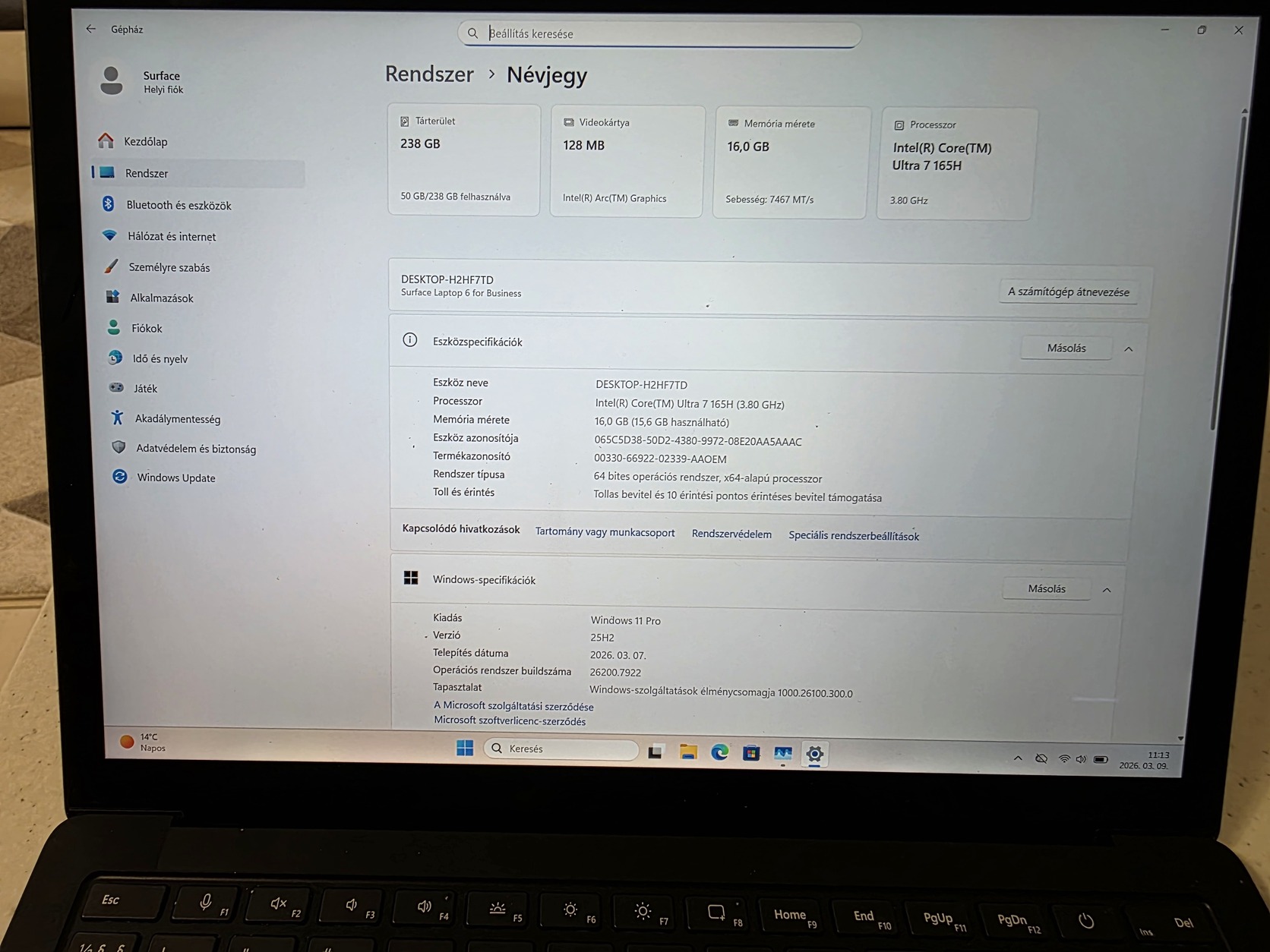Ideális munkára, tanulásra, üzleti felhasználásra vagy utazáshoz, ahol fontos a teljesítmény és a hordozhatóság.⚙️ Főbb specifikációk