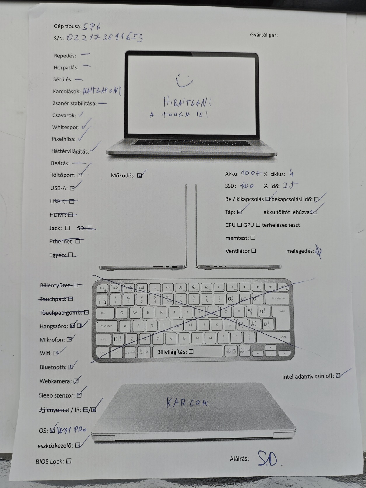 A hátlap karcos, használát nem befolyásolja, hibátlan működésű Windows Tablet!