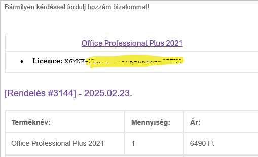 Nagyon sajnálom, hogy csalódott vagy, de ide is leírom nagyon szívesen, hogy nem, soha nem árultam Retail Officet, soha nem is hirdettem annak. Kifejezetten úgy is van megfogalmazva a hirdetésem még csomag esetén is hogy "Office Professional Plus 2021 for Win + Win10 / 11 Pro Retail" ---- miszerint csak a Windowsnál van feltüntetve, hogy Retail. Officenál változó, hogy sima 1pc vagy LTSC változat, ami éppen van, ugyan az a végeredmény.