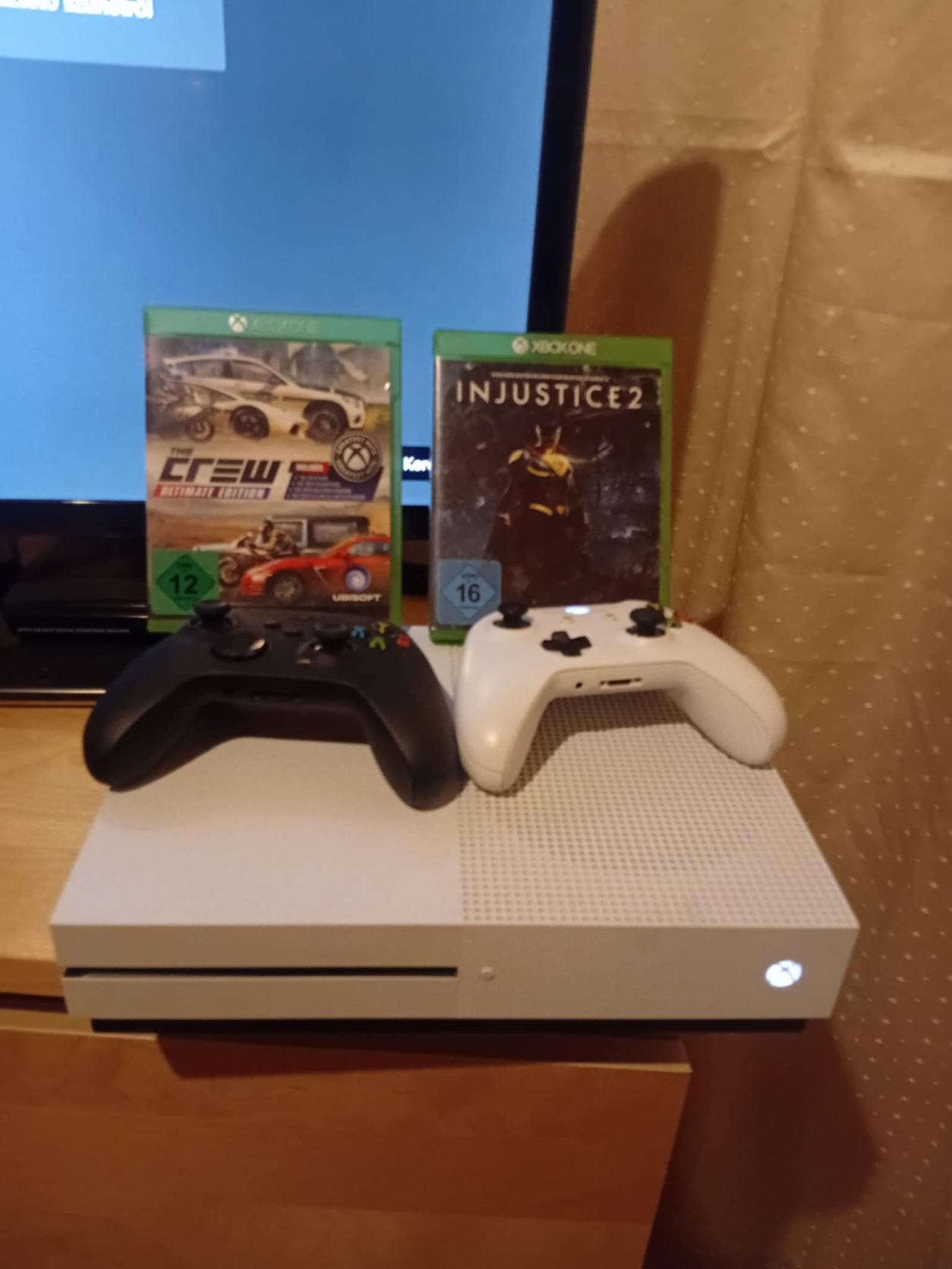 Eladó egy 500 GB tárhelyű Microsoft Xbox One konzol, két darab eredeti kontrollerrel és két játékkal együtt.
