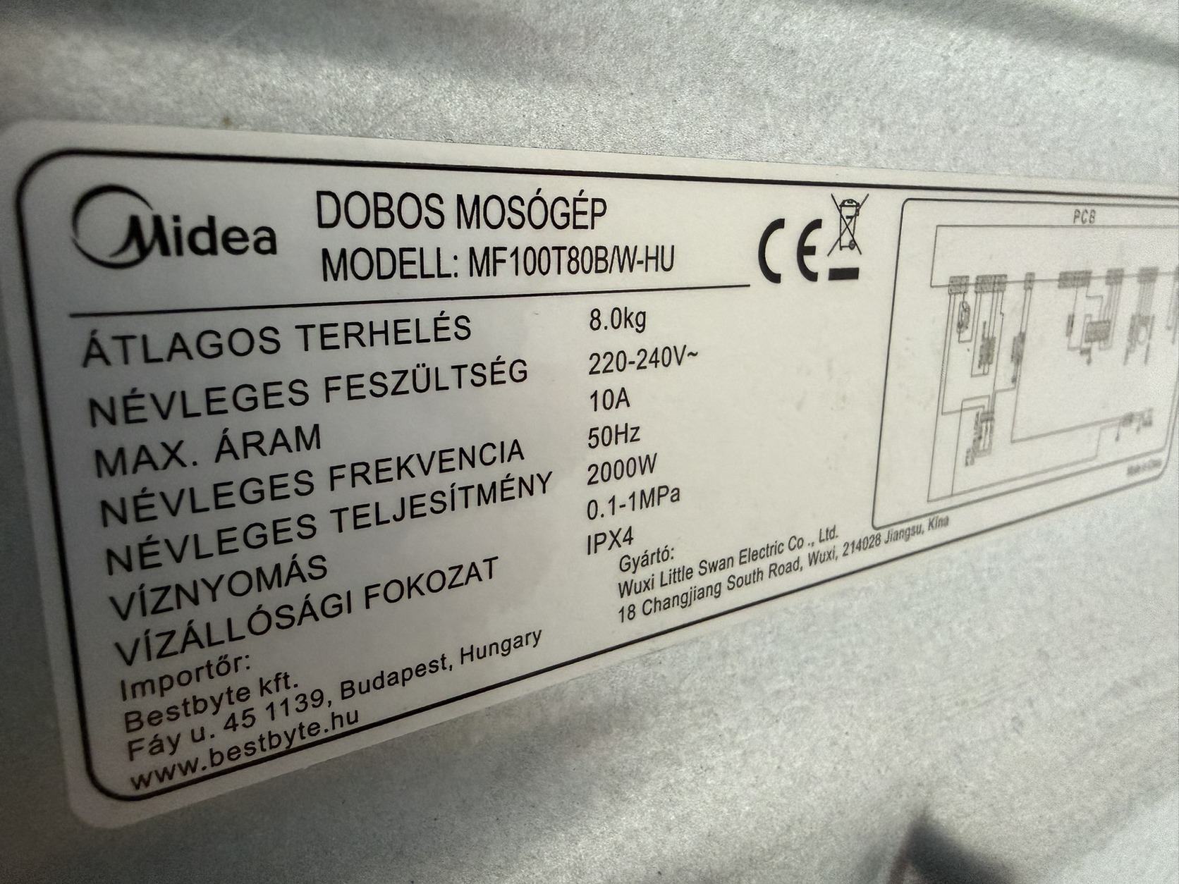 Midea MF100T80B/W-HU mosógép