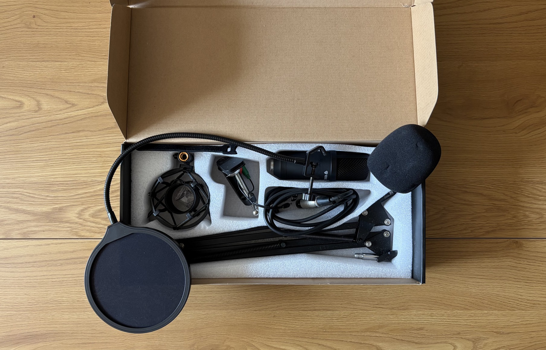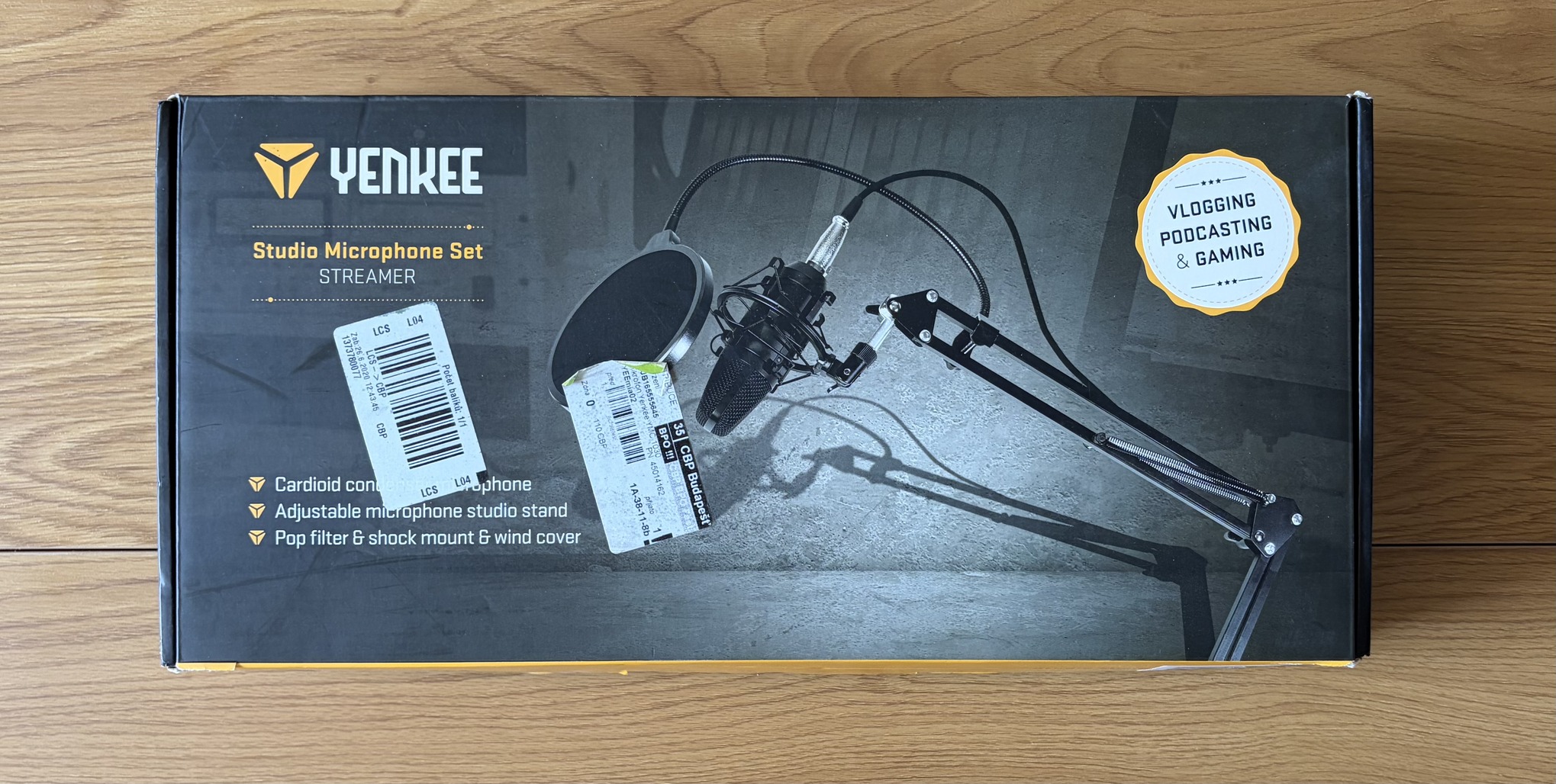 Dobozos Yenkee mikrofon minden tartozékával. A mikrofon szivacs itt-ott kicsit megnyomódott a dobozba csomagolástól.