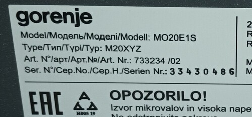 Mikrohullámú sütő, Gorenje MO21E1S