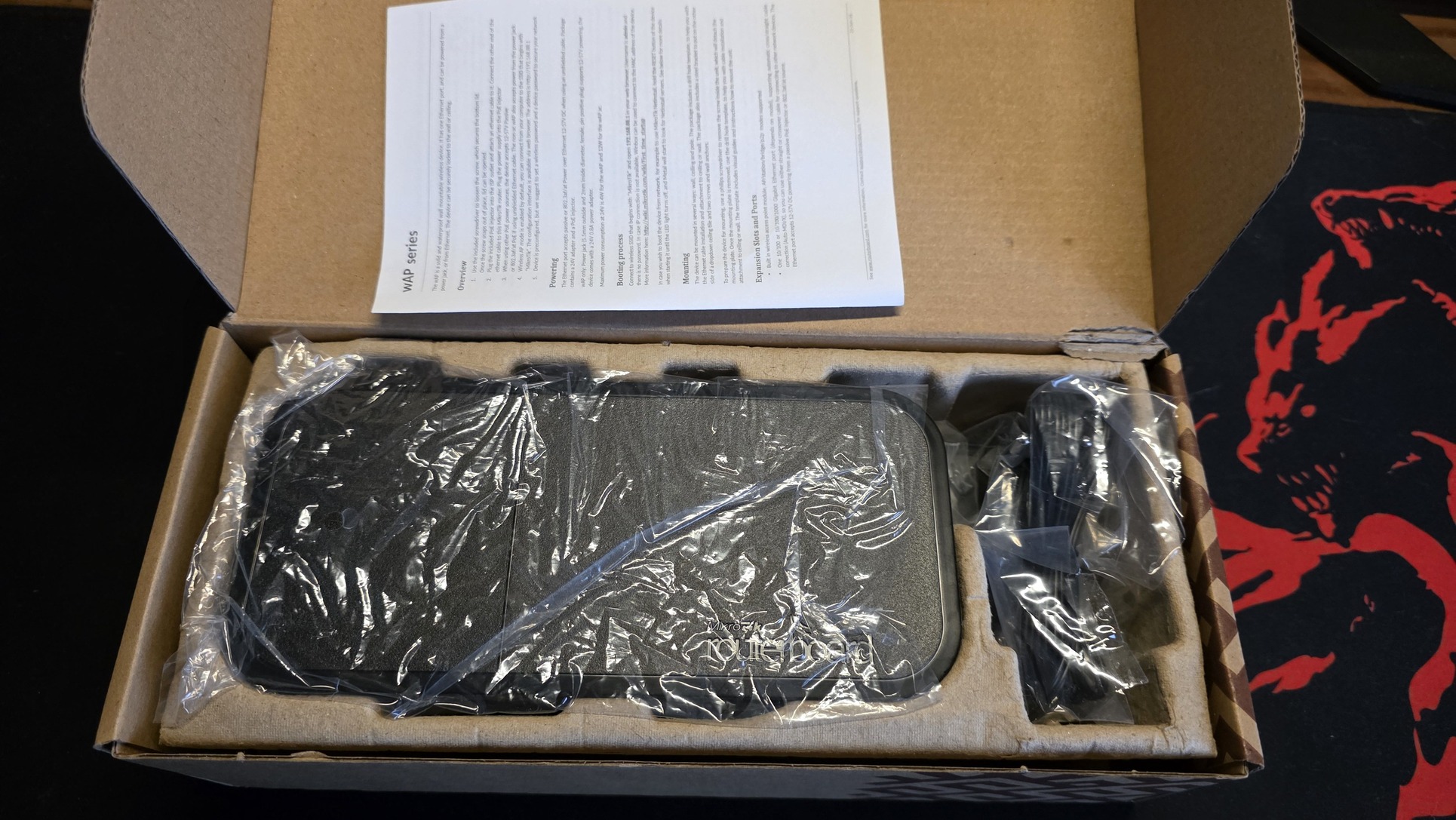 Minden tartozéka megvan, én POE-n adtam neki áramot, polcon ült, így a konzolok is érintetlenek.