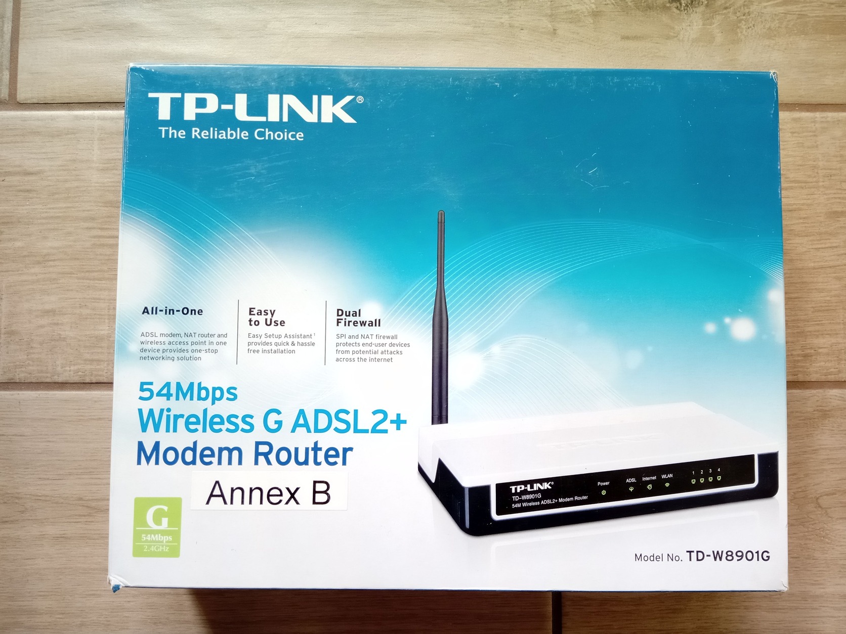 - TP-Link TD-W8901G ADSL modem + wifi router. Dobozában, tápegységgel, kábelekkel, CD-vel, kinyomtatott kezelési utasítással, ADSL splitterrel. Nem sokat használt, de az idő megsárgította. (Az ADSL részét már nem tudom kipróbálni.)