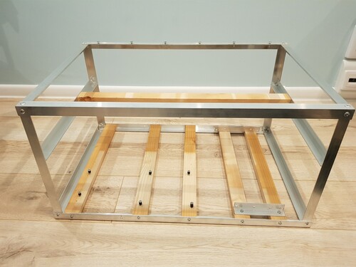 Eladó egy igényesen megépített alumínium/fa bányászgép keret, azaz miner rig.