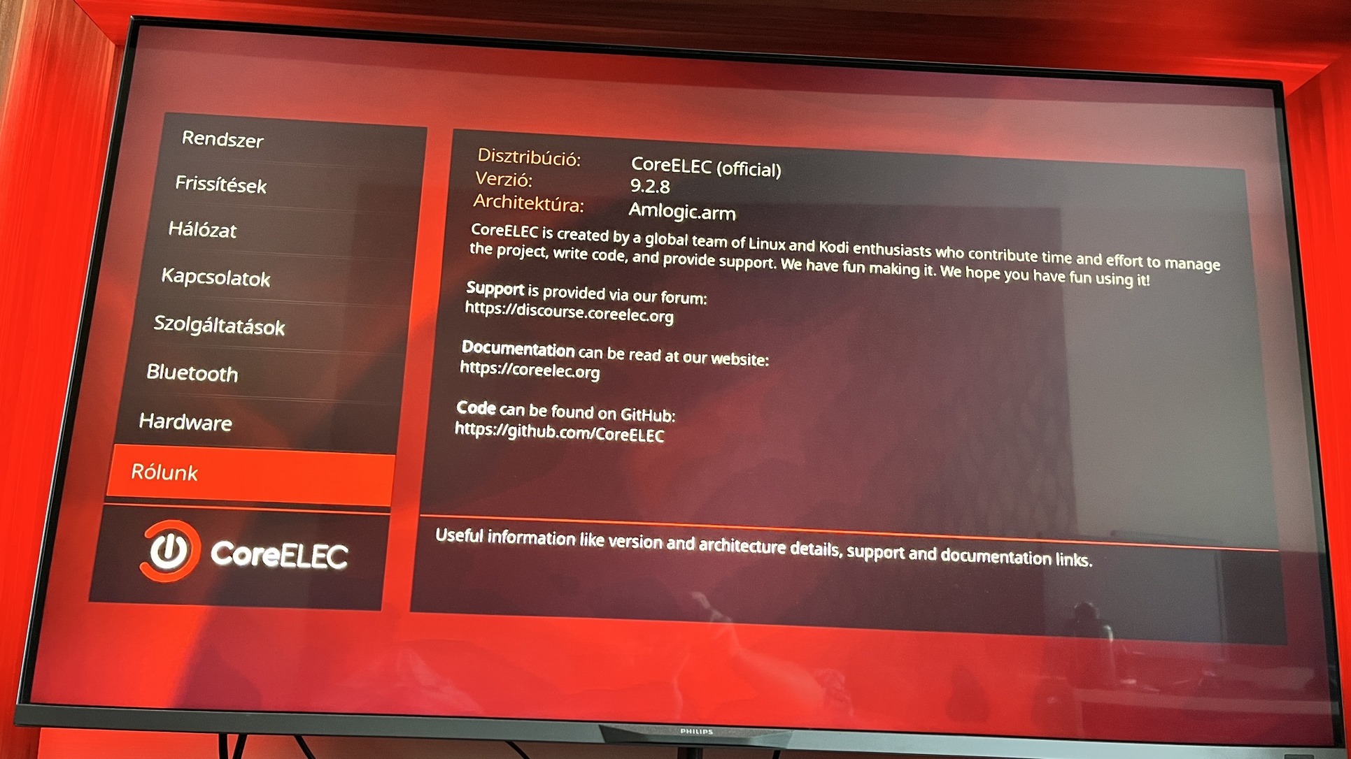 Jelenleg CoreELEC (Kodi a rendszer részeként integrált) rendszer van rajta