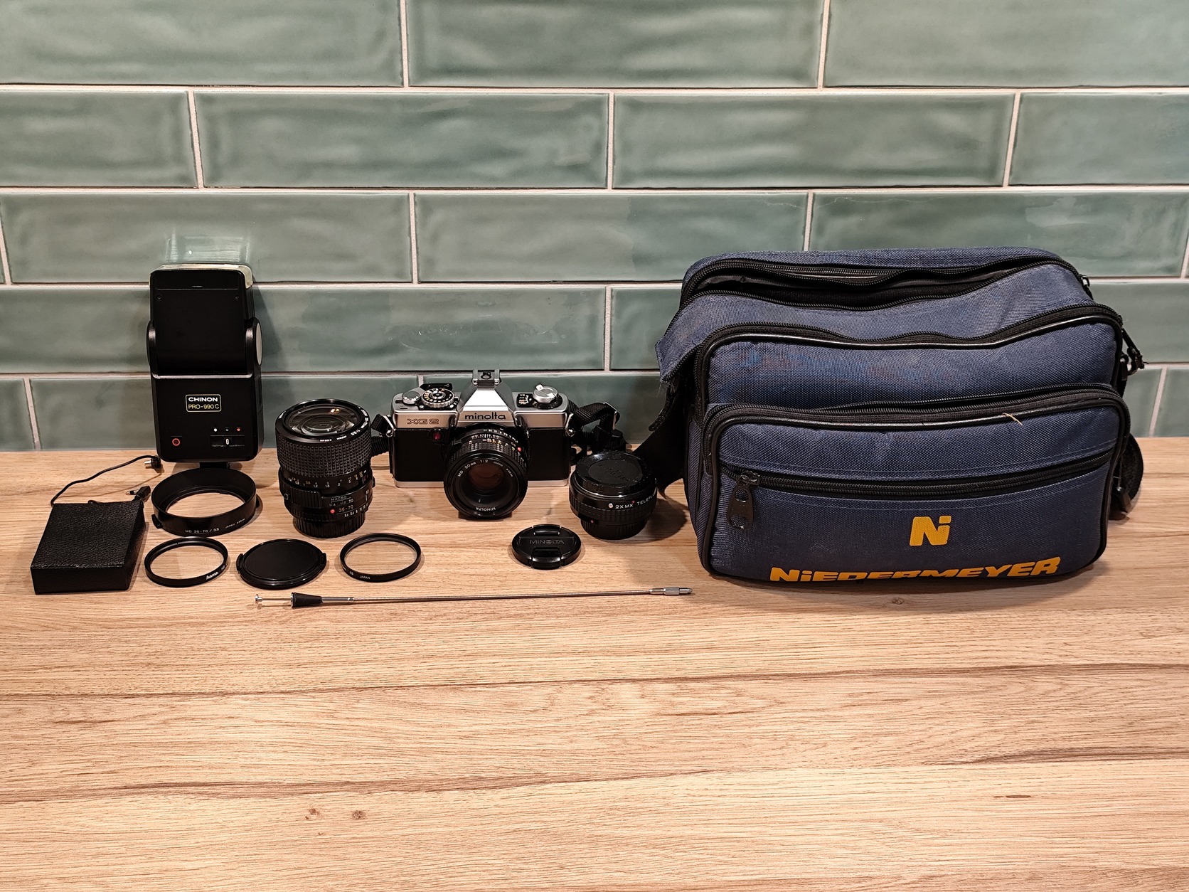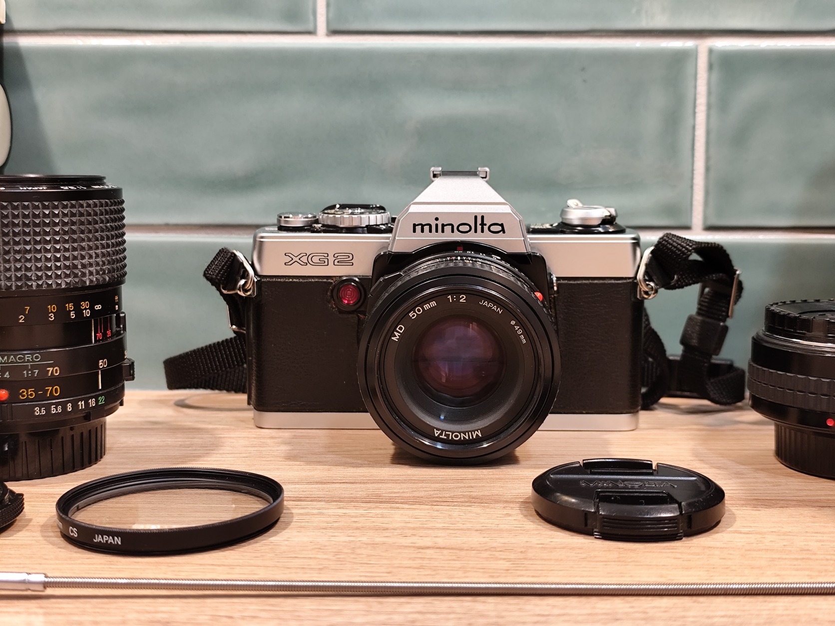 Eladó egy filmmel tesztelt Minolta XG2 analóg fényképezőgép, az alábbi tartozékokkal: