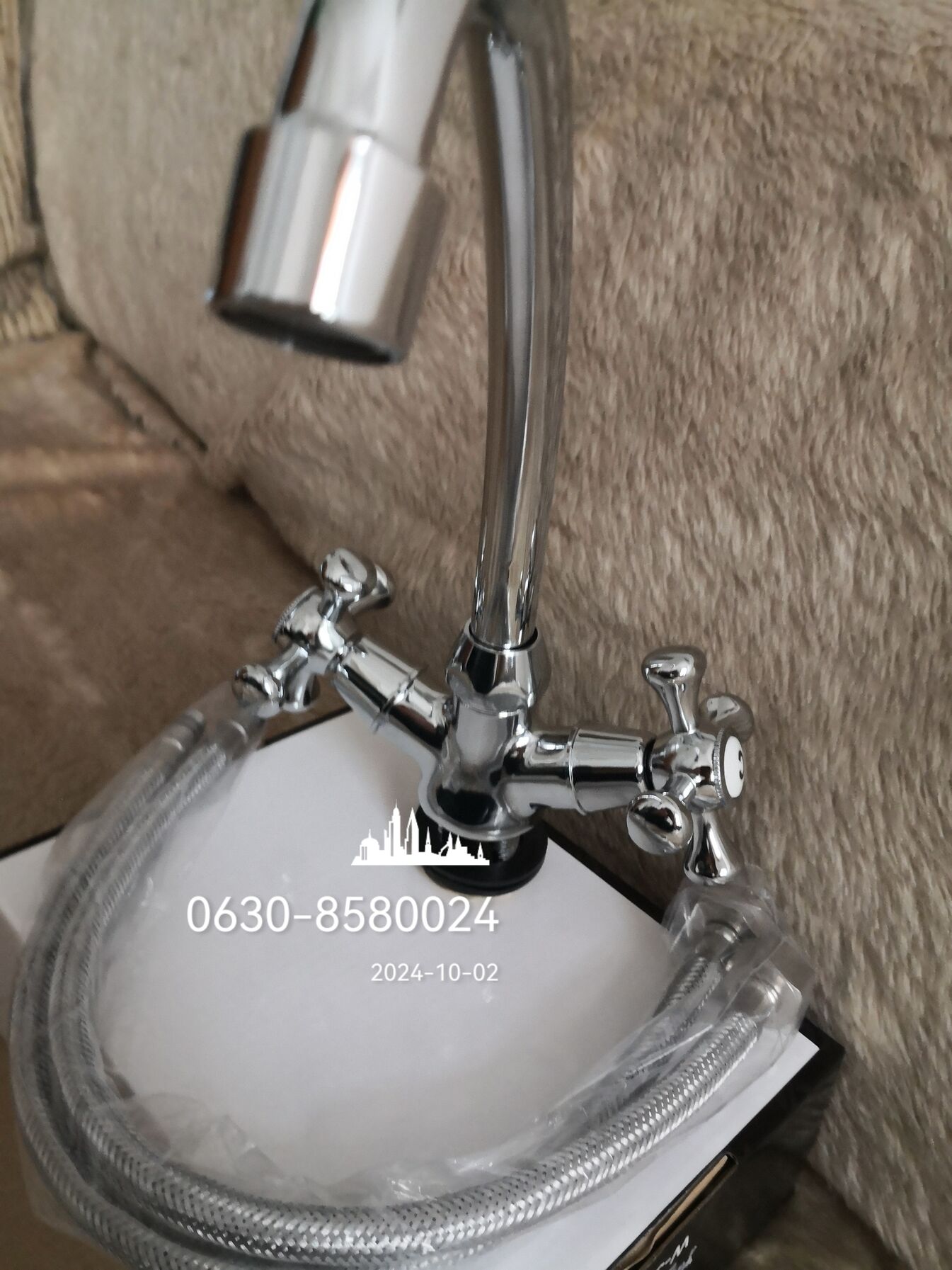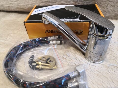 Mosdó / mosogató csaptelep új, dobozos vízcsövekkel, tőmítésekkel 23,5 cm es kifolyóval