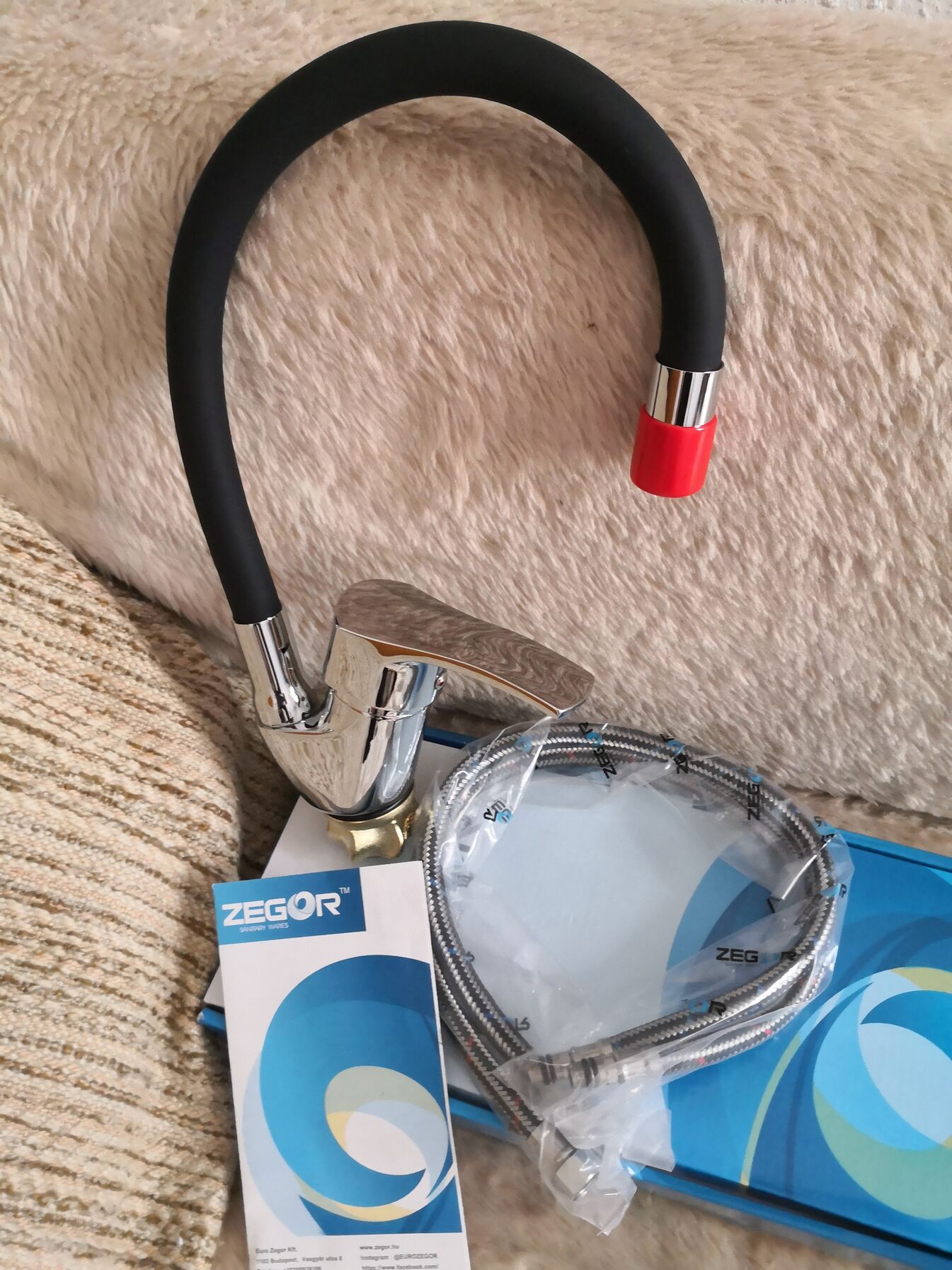 Zegor prémium flexibilis egykaros mosogató csaptelep króm / fekete
