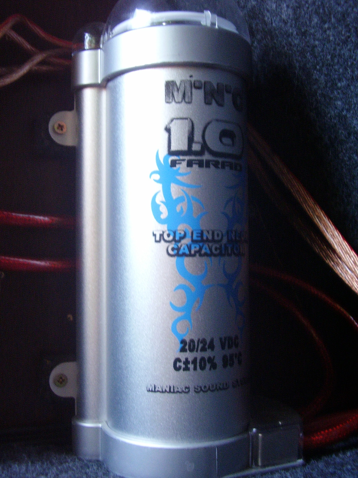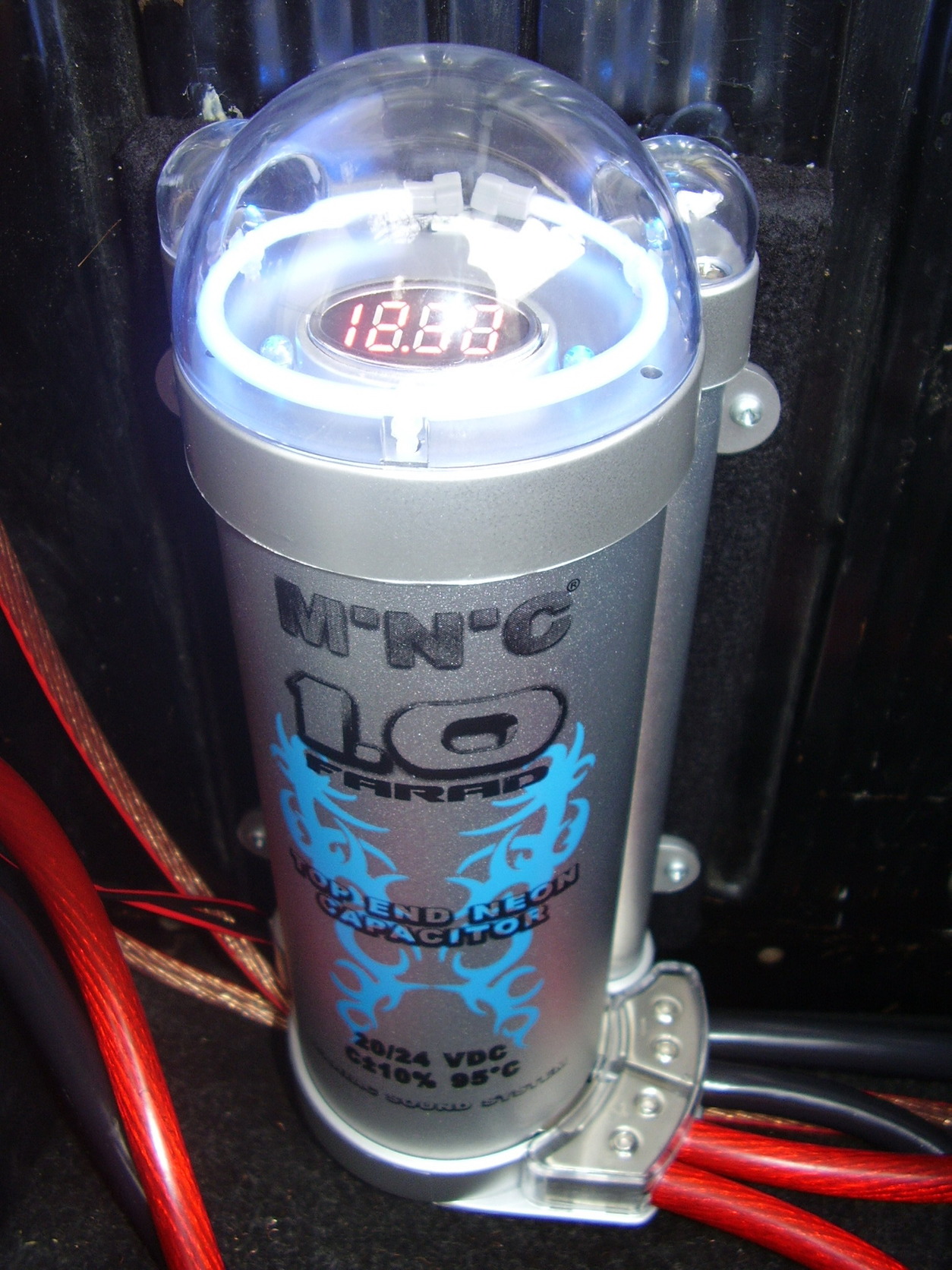 Eladó a címben említett 1 farád-os autóhifi tápkondenzátor.