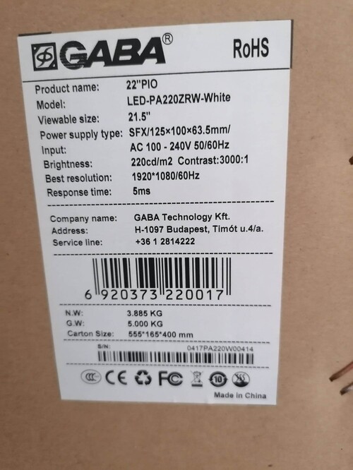 Eladó több darab új,22" FullHD GABA Pio Led beépíthető monitor-All-In_pc. (fehér)