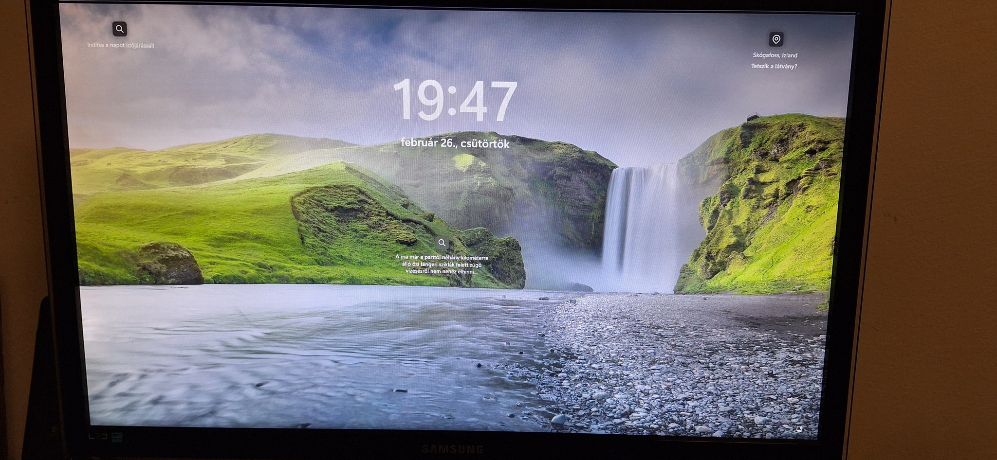 Eladó samsung 27" LS27A550HS monitor.Eco Motion Sensor: Automatikusan érzékeli a felhasználó jelenlétét, és energiatakarékos módba lép, ha senki nincs a képernyő előtt.Eco Light Sensor: A környezeti fényviszonyokhoz igazítja a képernyő fényerejét a szem kímélése érdekében.MagicAngle: Segít megőrizni a képminőséget és a színeket akkor is, ha a felhasználó nem pont szemből nézi a monitort.Dizájn: Elegáns "Rose Black" káva, átlátszó talppal és rejtett kábelkezelési lehetőséggel a monitor nyakán.Kijelző típusa: LED-háttérvilágítású TN panel.Felbontás: 1920 x 1080 (Full HD) @ 60 Hz.Fényerő: 300 cd/m².Kontrasztarány: 1000:1 statikus (Mega Dynamic Contrast technológiával).Válaszidő: 2 ms (Grey-to-Grey).Betekintési szög: 170° vízszintes / 160° függőleges.Csatlakozók: 1x HDMI, 1x D-Sub (VGA)