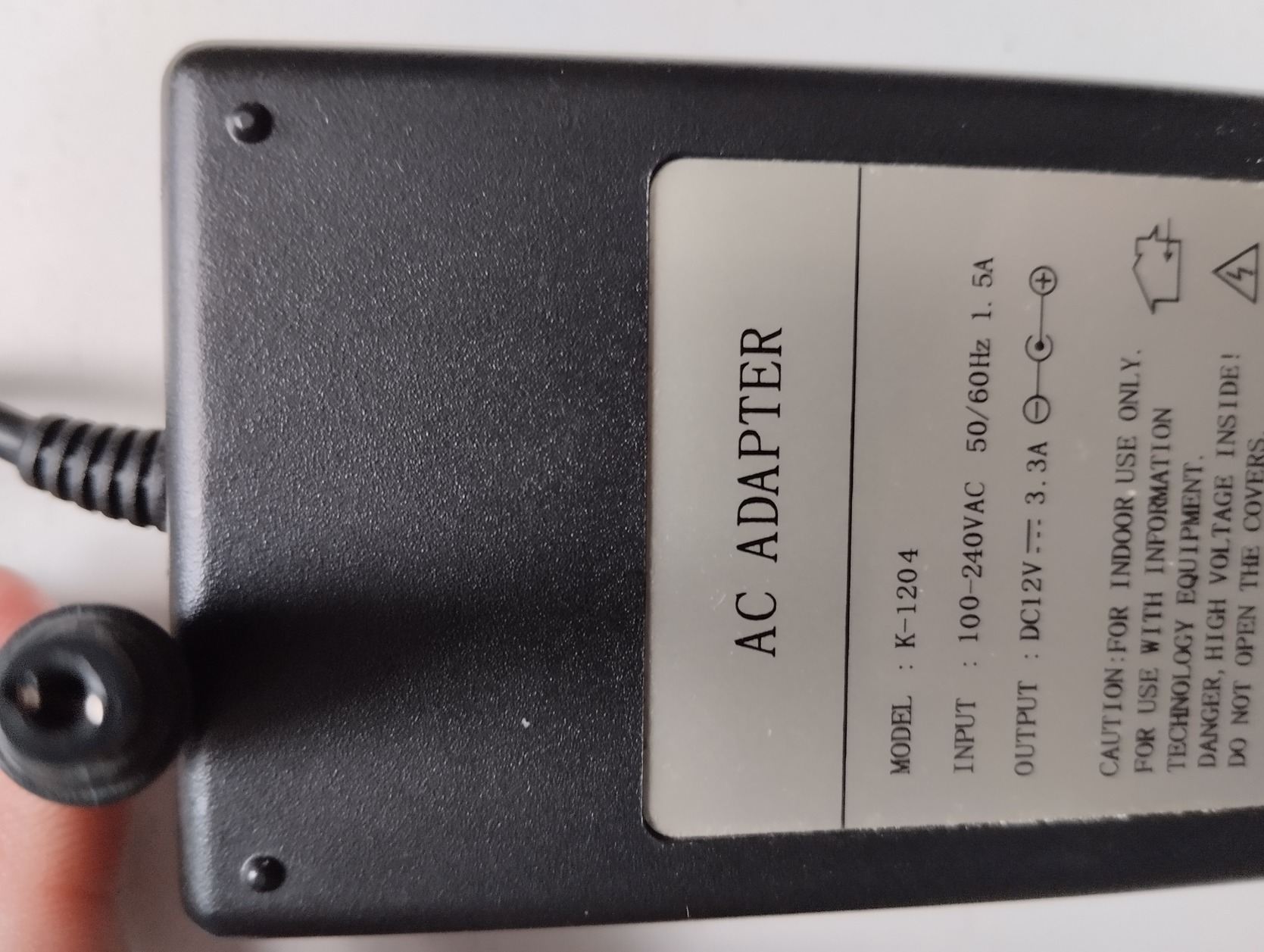 K-1204 AC Adapter, output 12VDC, 3.3A;