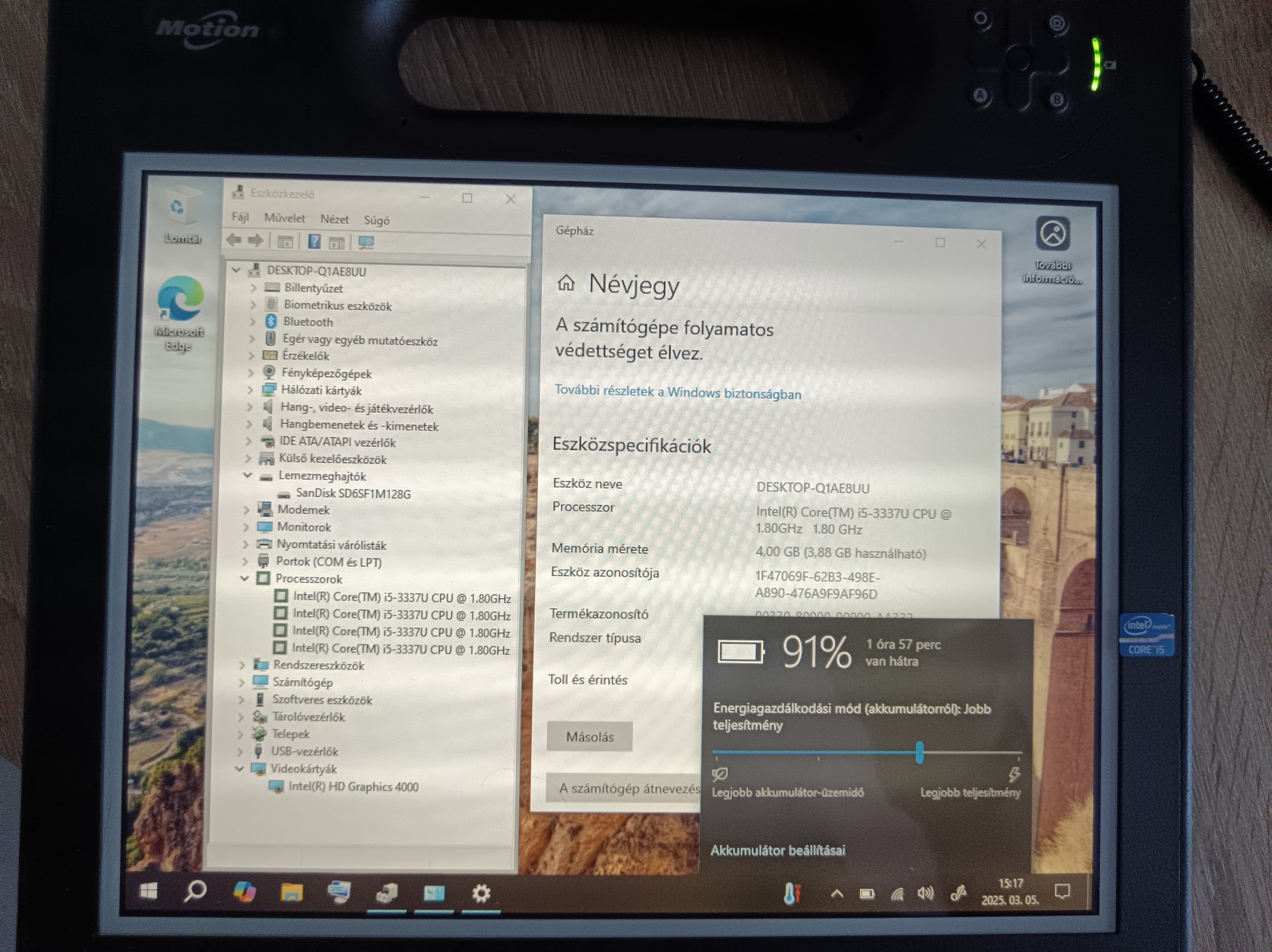 I5-3337u, 4gb ram, 128gb ssd, akku müxik, Win10 tesztelve driver fent (A teljes képes kép egy másikról készült, de külsőre megegyeznek.)
