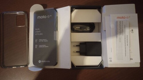 Motorola E13 kártyafüggetlen telefon, hibátlan, újszerű állapotban, dobozában, bontatlan tartozékaival plusz ajándék átlátszó szilikon tokkal.