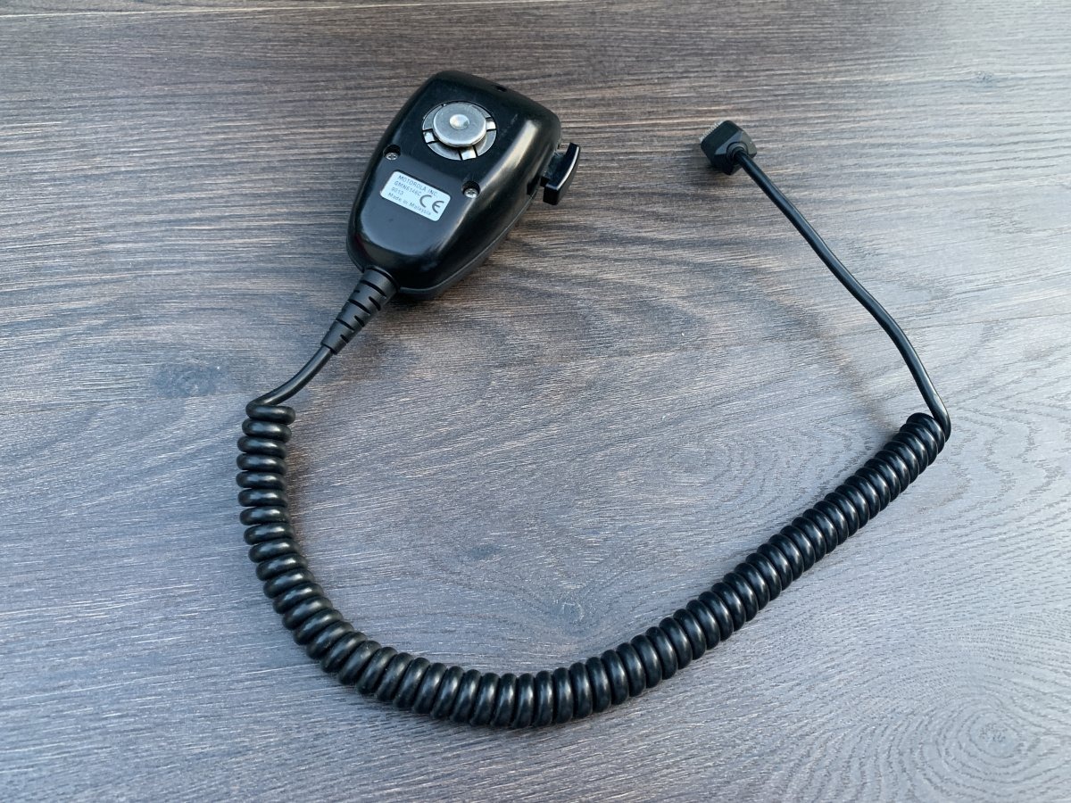 Eladó a hirdetésben szereplő használt de jó állapotban lévő Motorola kézi beszélő/mikrofon,