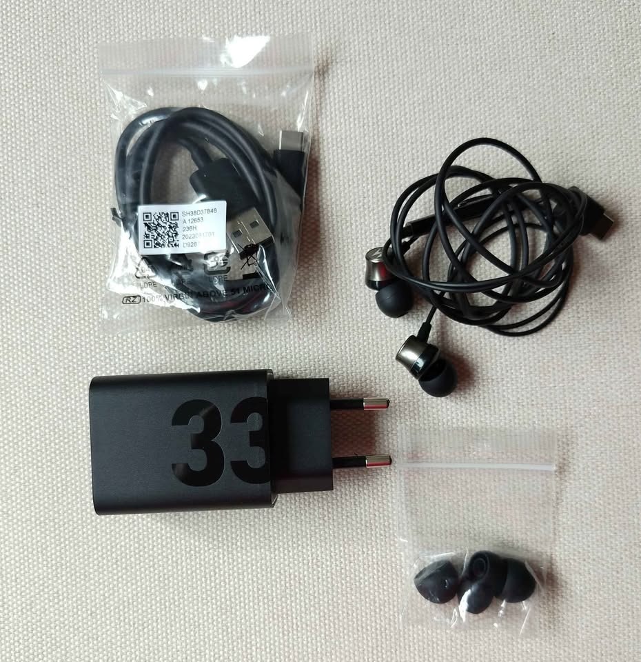 Dobozában, papírjaival és minden gyári tartozékával: 33W gyorstöltő, szilikon tok, "agybadugós" headset.