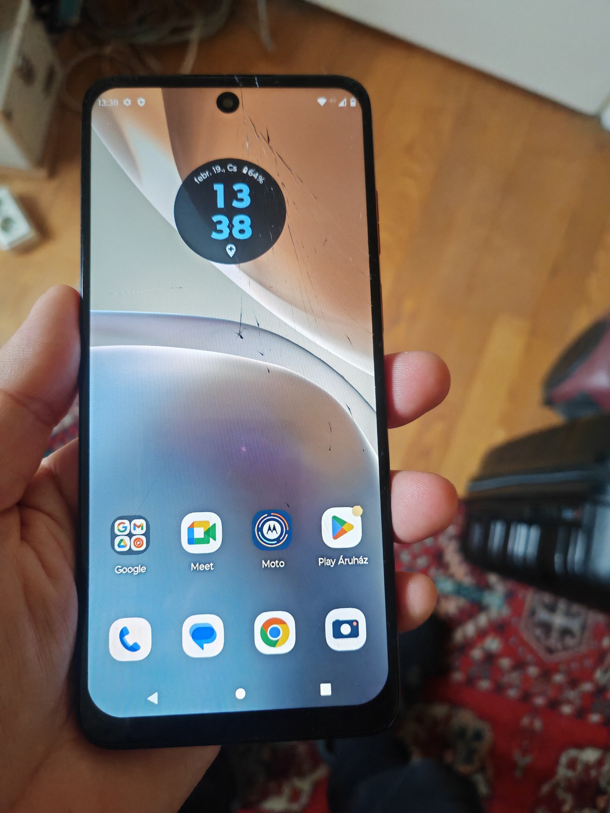 Kijelző repedt, de mindenhol érzékel, hiba :WiFit dobálja, sim kártyával működik jól!, tartozék :USB kábel, foxpost posta ok előreutalva vagy Debrecen személyesen!