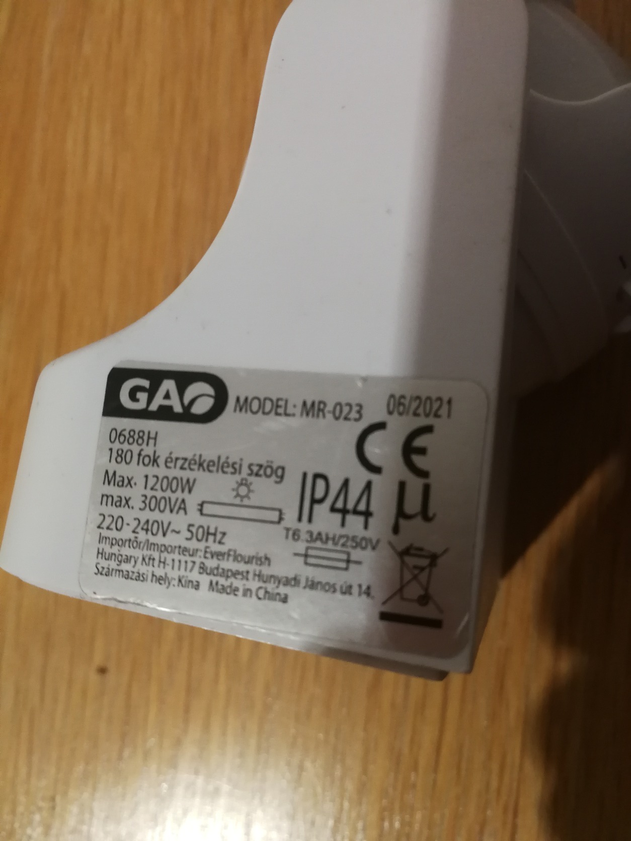 Gao mr-023 fény és mozgásérzékelős, állítható elektromos kapcsoló. Szintén a bekötés módjától fog áramot adni. 180 fokos szögben lát.