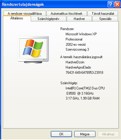 - Intel Core 2 Duo E8500 CPU, Intel gyári hűtővel