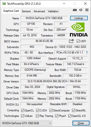 MSI Armor GTX 1060 6GB