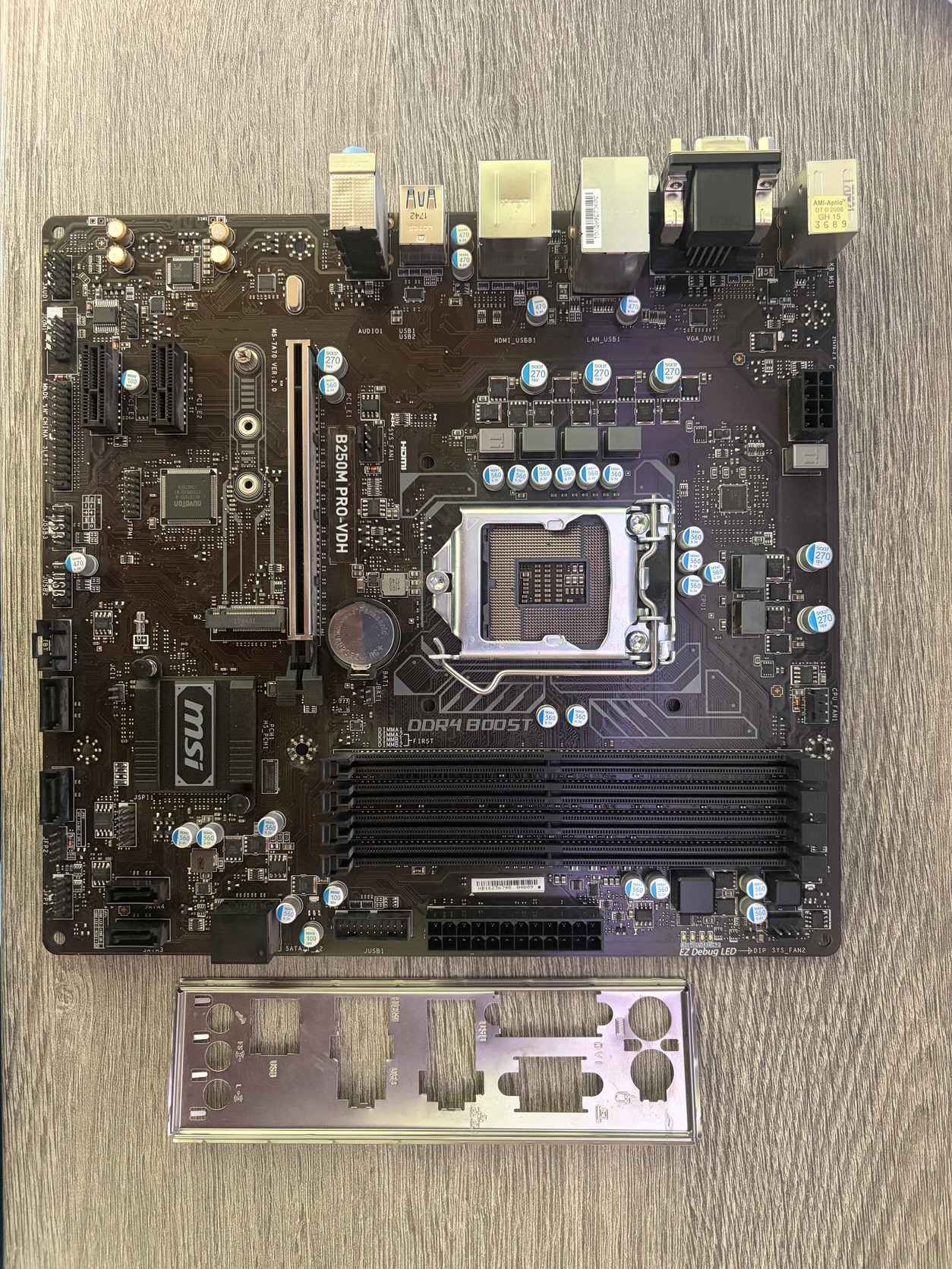 Eladó egy tökéletes állapotban levő, tesztelt MSI b250m pro-vdh alaplap hátlapjával együtt.