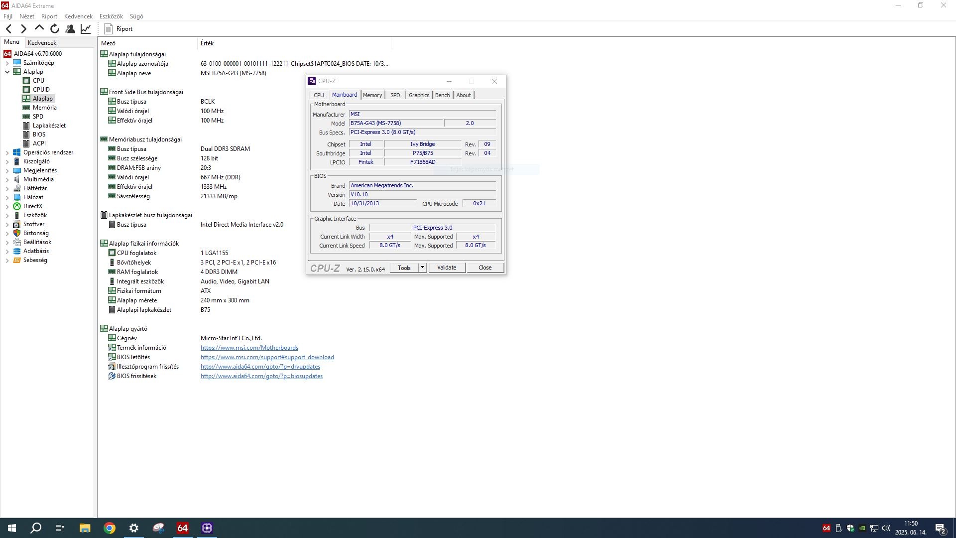 Eladó 1 db használt MSI B75A-G43 alaplap.