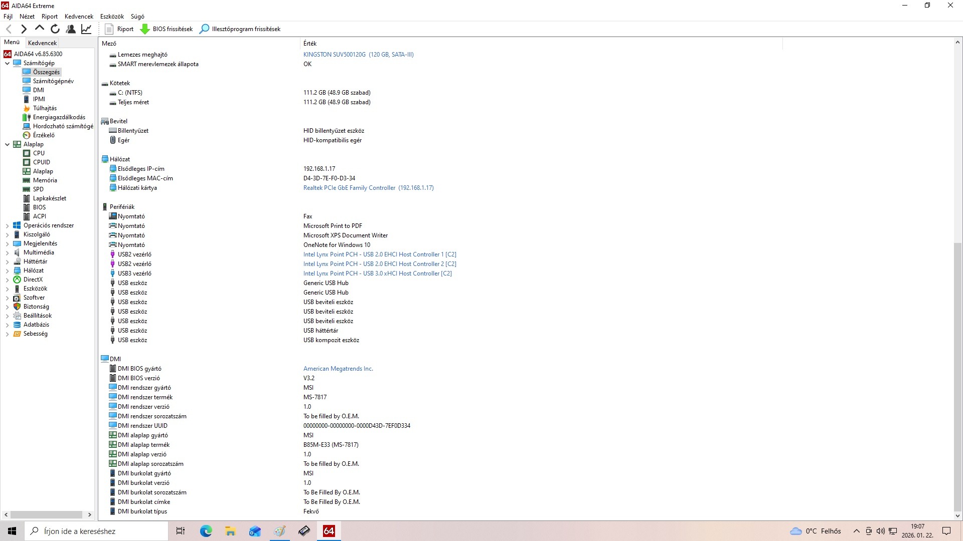 Részletes leírás: https://www.msi.com/Motherboard/B85M-E33/Specification