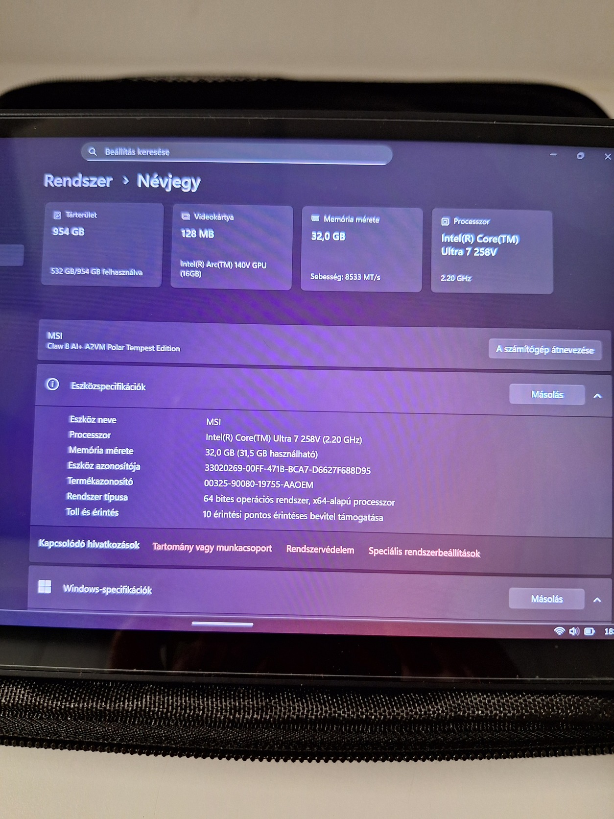 Jegelve – MSI Claw 8 Ai + Polar Tempest Edition 32 gb ram 1tb ssd