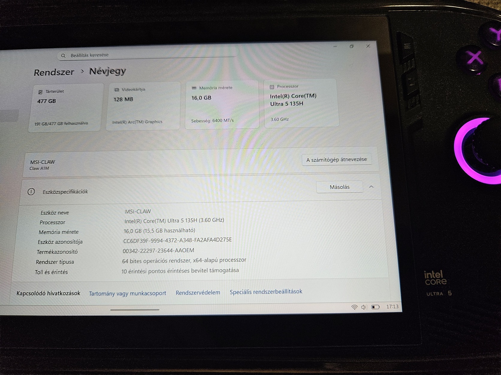 Eladó a képeken látható makulátlan állapotban lévő Msi claw ultra 5 windows kézi konzol. Minden gyári tartozék doboz töltő plusz szilikontok jár hozzá. A kijelző üvegfóliás. Jótállás megvan hozzá. 2025 szeptemberben lett vásárolva onnantól van 2 év.