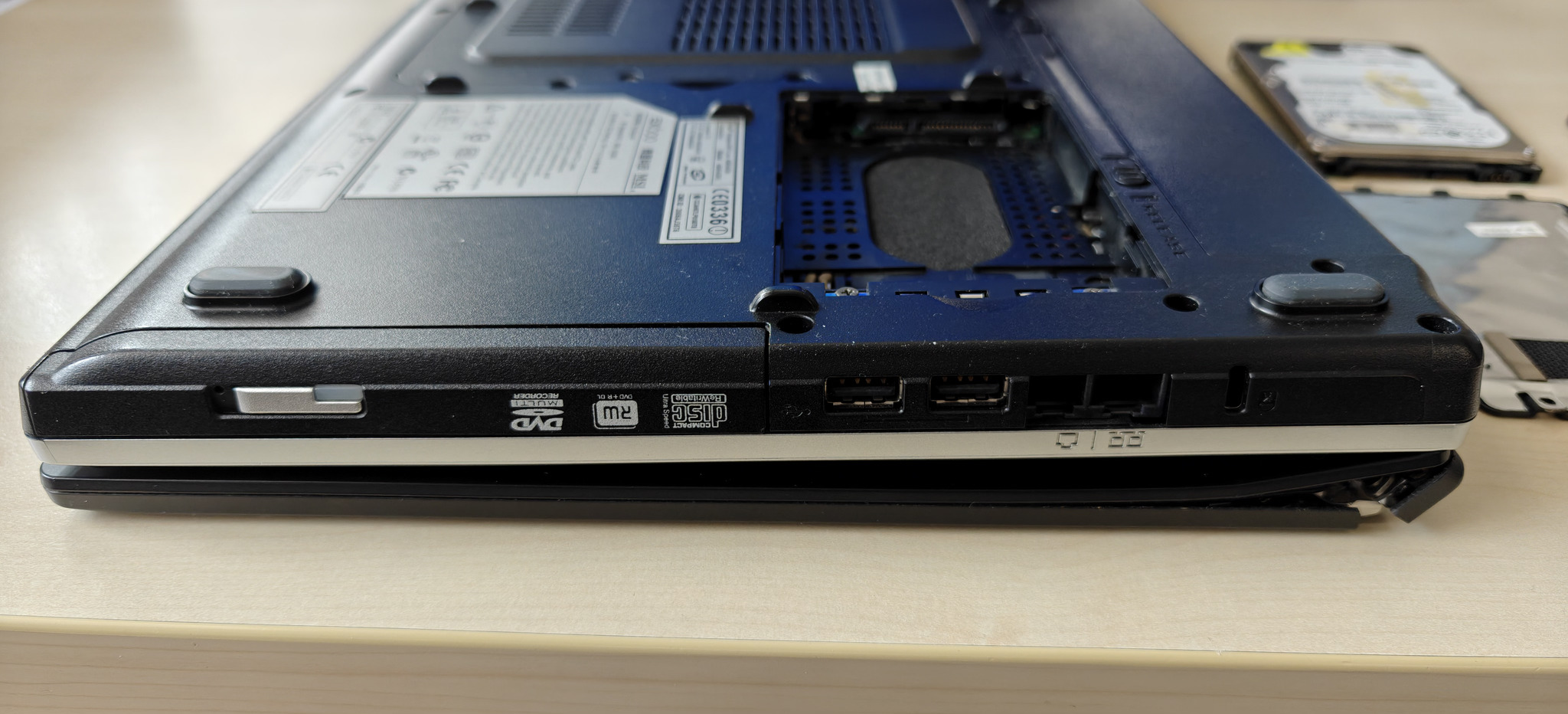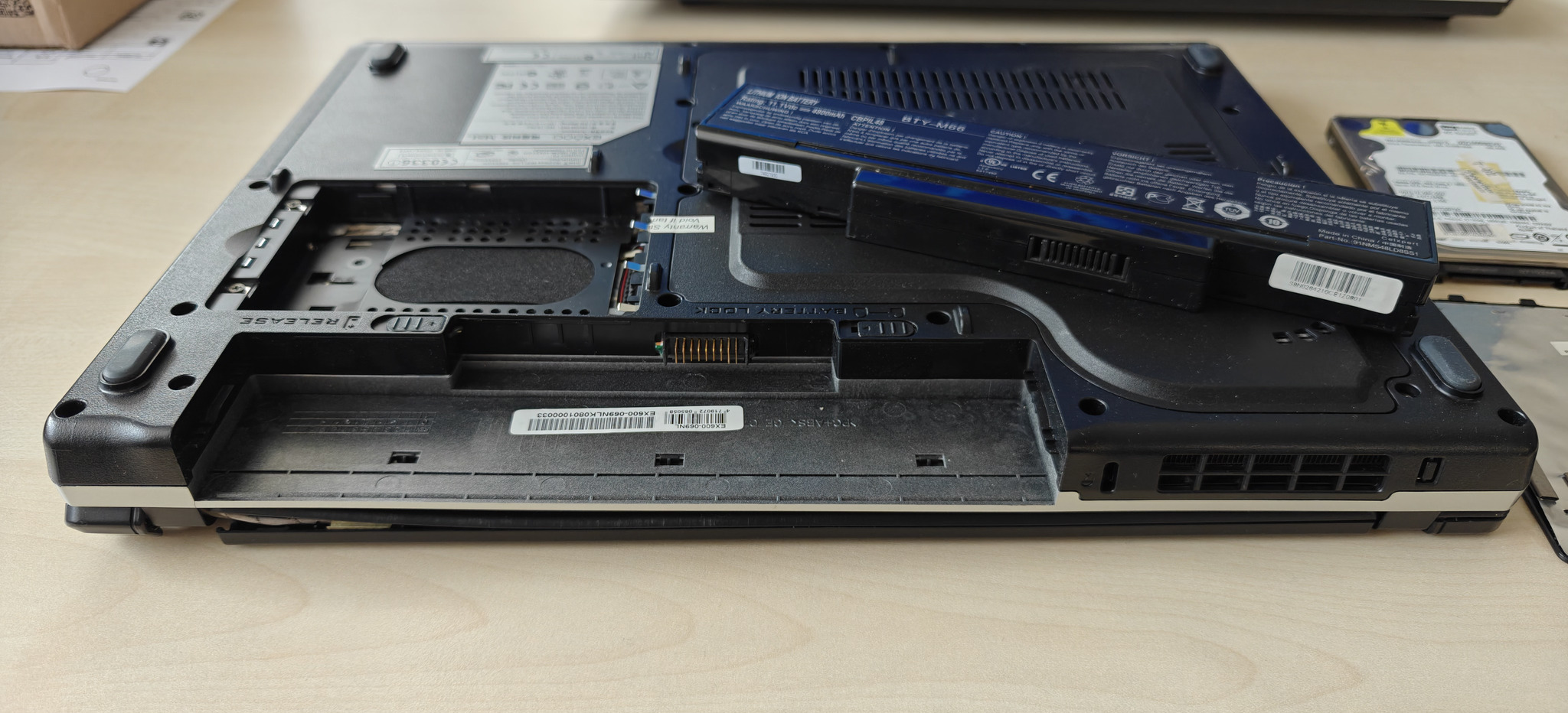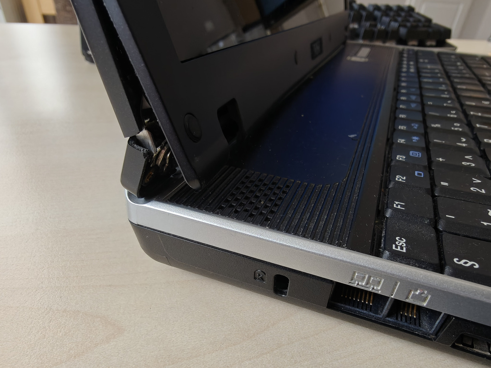 "Eladó" egy régi irodai laptop. Csak maga a gép van meg, doboza, táska stb. és töltője nincs, így nem tudom kipróbálni sem. Ebből kifolyólag nem tudom pontosan, hogy milyen hardver van benne. A kijelző bal zsanérja törött, de felnyitható, viszont nem túl stabil. Amit biztosan tudok róla: