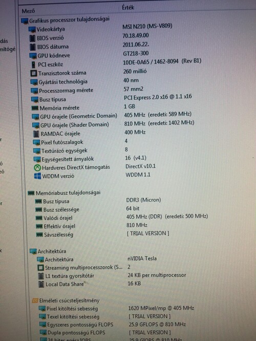 MSI GeForce 210 LP 1GB GDDR3 64bit PCIe+ low profil hátlap