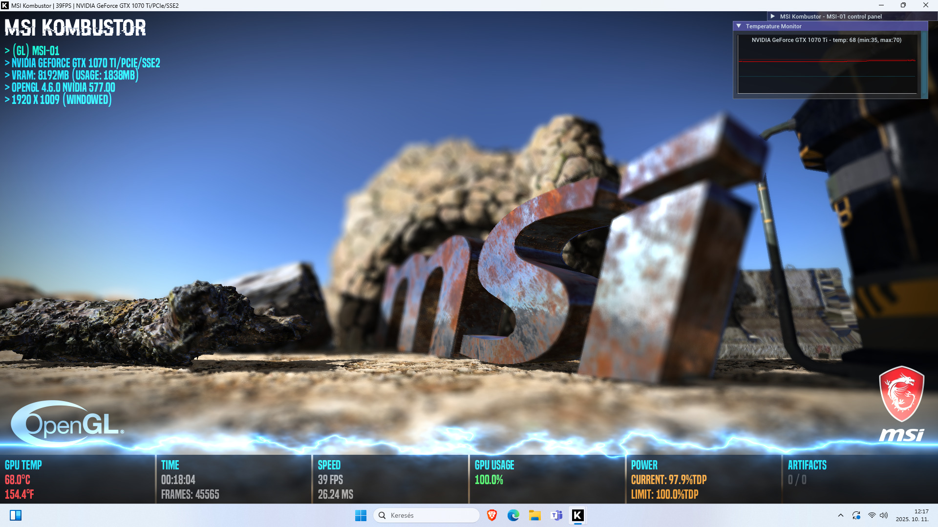- MSI TORX 2.0 ventilátor technológia (dupla ventilátor, csendes és hatékony hűtés)