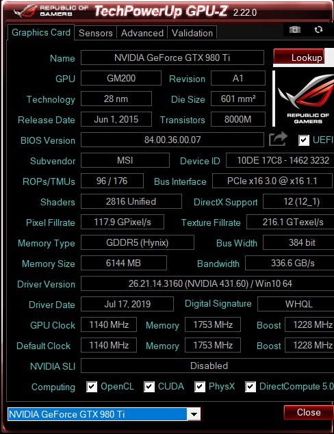 MSI Geforce GTX 980 TI Gaming 6G--értékelésre vár--