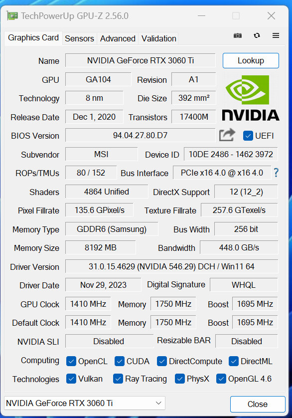 MSI GeForce RTX 3060Ti 8GB Ventus 3x OC