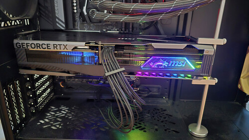 Gyári 3x8pin tápkábel, VGA tartó, MSI figura, portvédők a tartozékok.