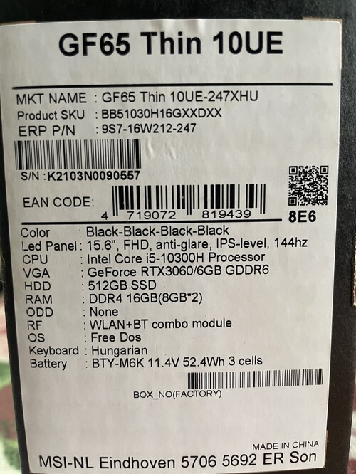MSI GF65 i5-10300H RTX 3060