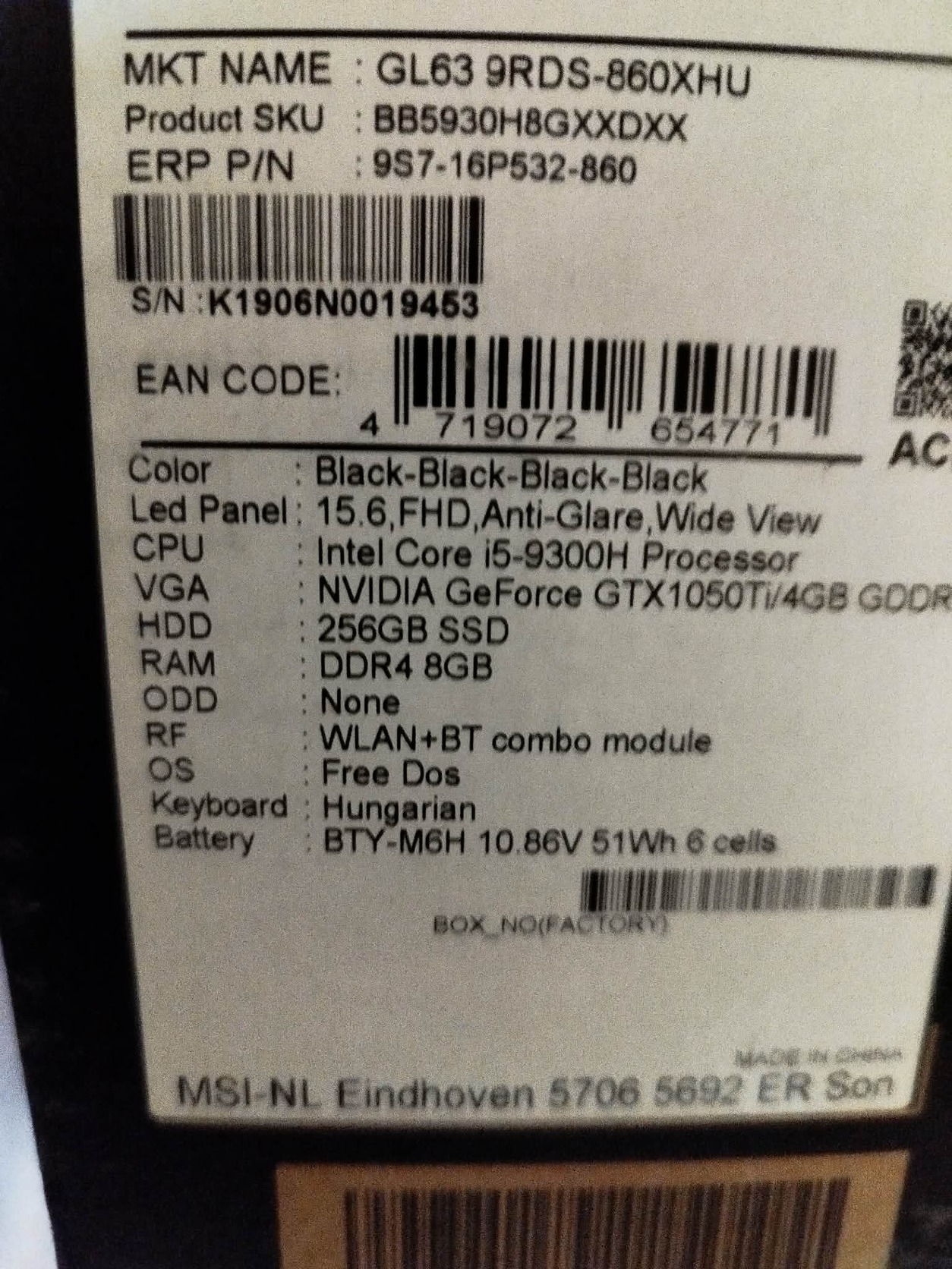 MSI GL63-csere asztali pc-re