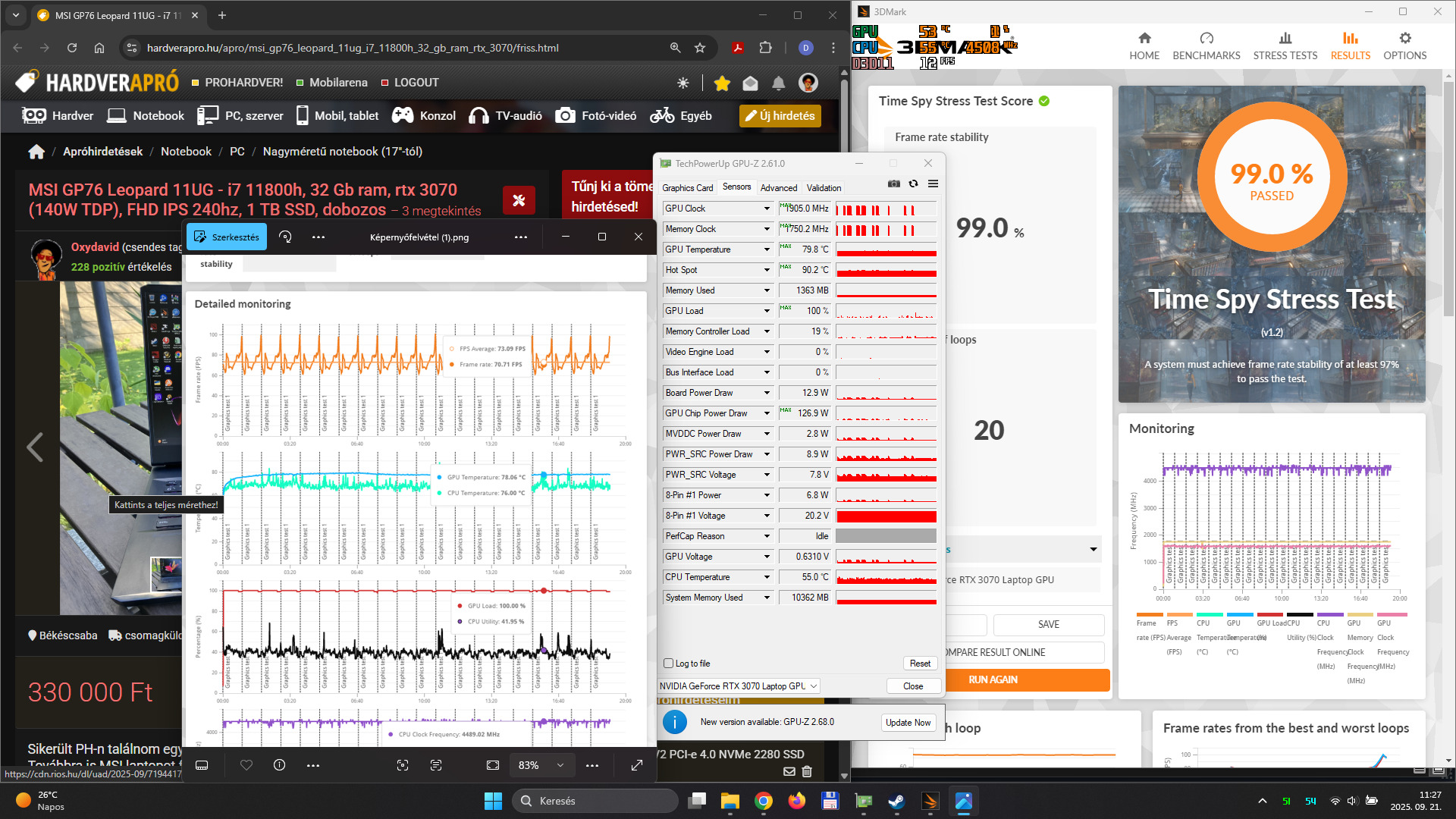Extrém jó hűtése van és brutál erős a proci vga kombó benne. Teszteket lehet nézni róla 3070ti szintet hozza.