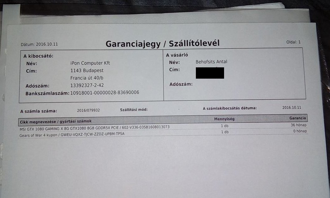 MSI GTX 1080 Gaming X - 2019.10.11-ig Ipon garancia